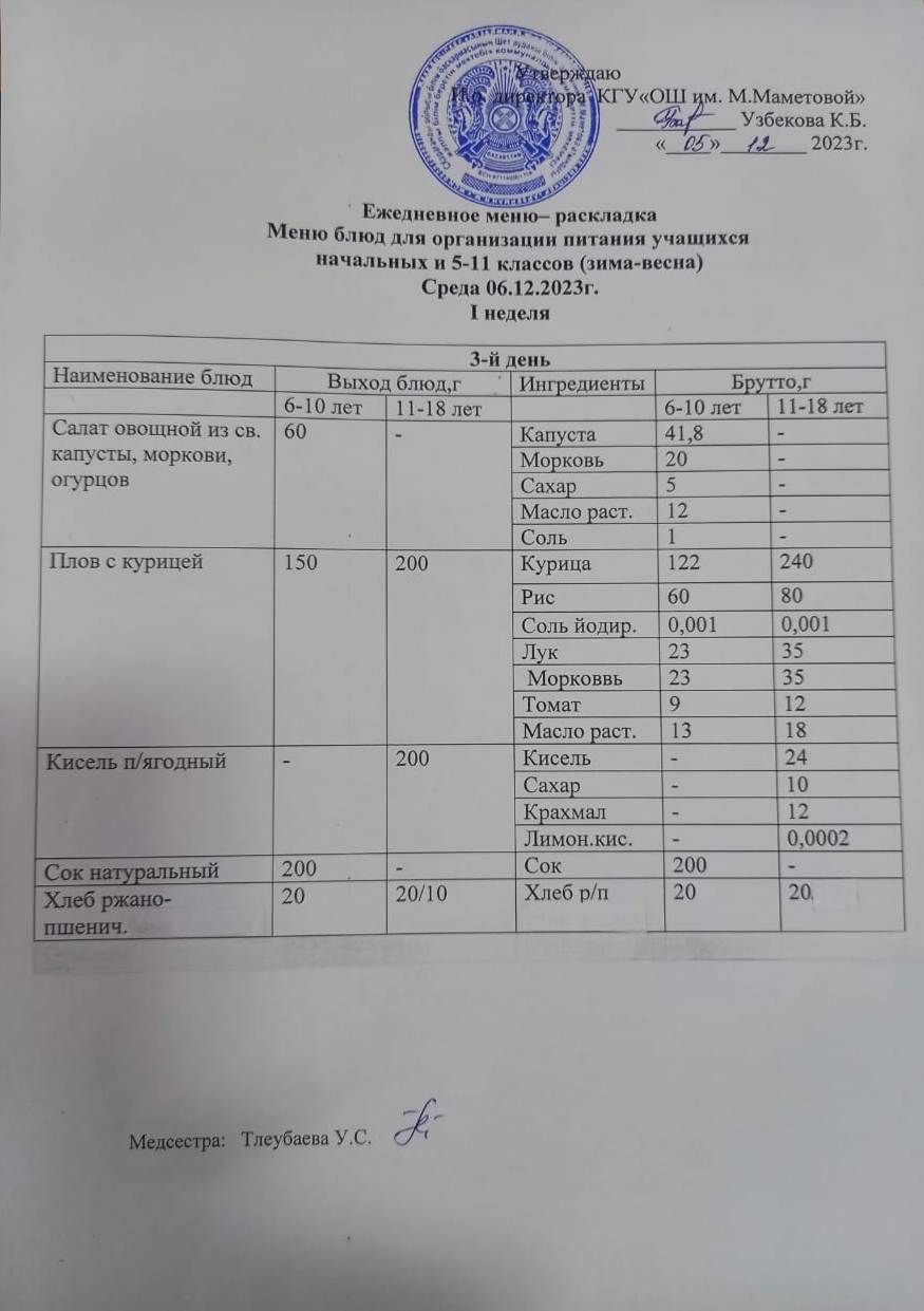06.12.2023 БАСТАУЫШ СЫНЫПТАР МЕН 5 – 11 СЫНЫПТЫҢ ӘЛЕУМЕТТІК ОСАЛ ТОП ОҚУШЫЛАРЫНЫҢ ТЕГІН ТАМАҚТАНУЫН ҰЙЫМДАСТЫРУҒА АРНАЛҒАН АС МӘЗІРІ