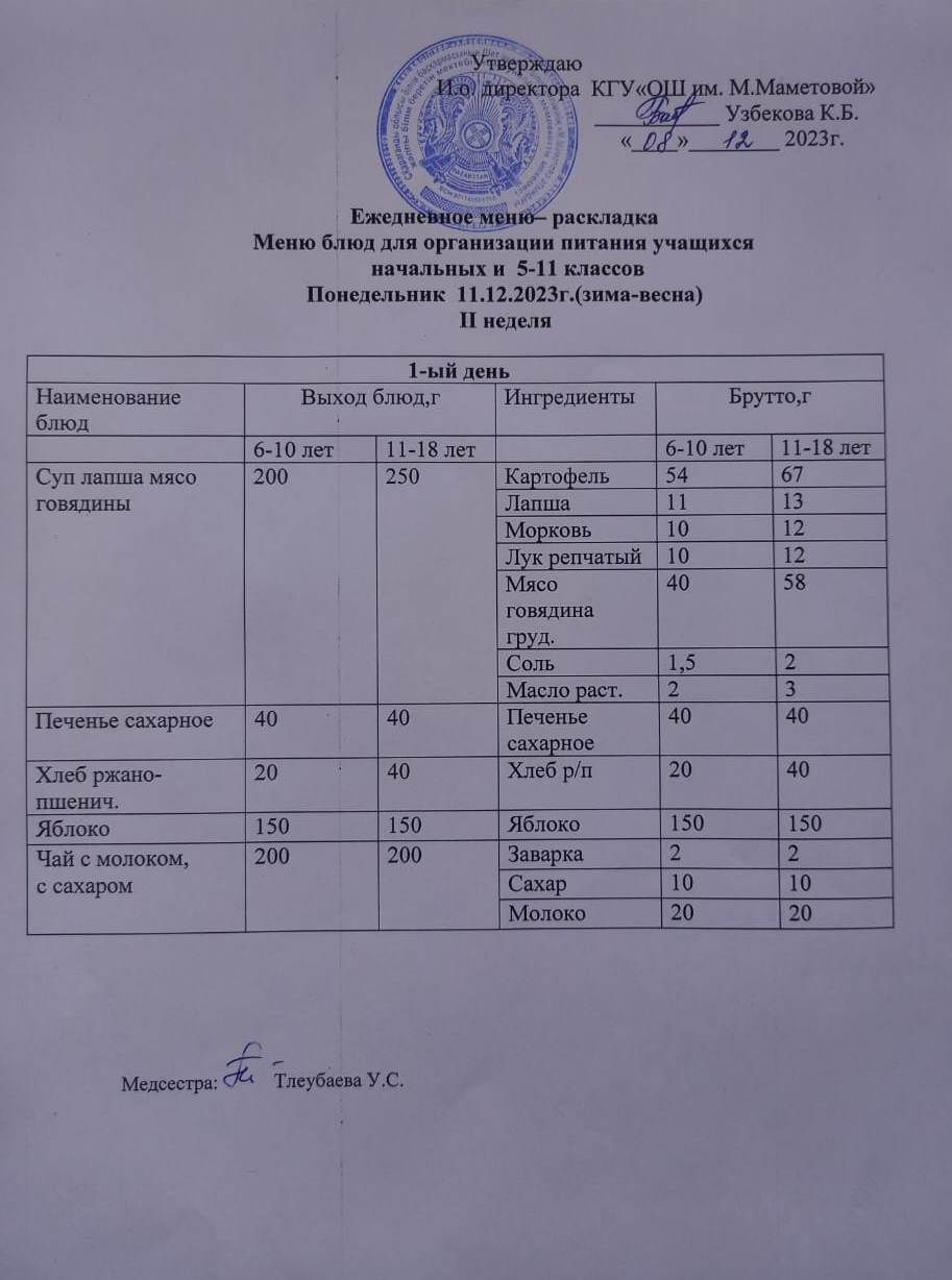 11.12.2023 КҮНІНЕ БАСТАУЫШ СЫНЫПТАР МЕН 5 – 11 СЫНЫПТЫҢ ӘЛЕУМЕТТІК ОСАЛ ТОП ОҚУШЫЛАРЫНЫҢ ТЕГІН ТАМАҚТАНУЫН ҰЙЫМДАСТЫРУҒА АРНАЛҒАН АС МӘЗІРІ