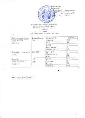 2022 - 2023 ОҚУ ЖЫЛЫНА АРАНЛҒАН БІР РЕТТІК ЫСТЫҚ ТАМАҚТАНУ МӘЗІРІ