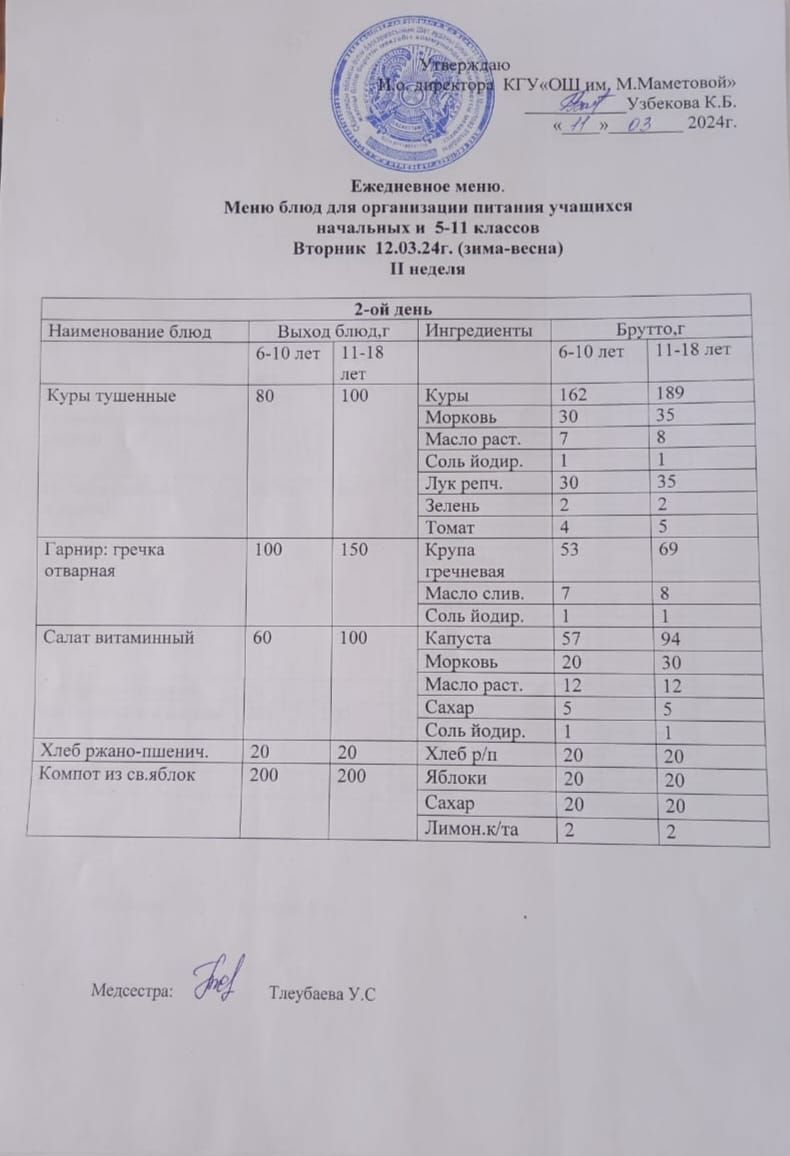 12.03.2024 БАСТАУЫШ СЫНЫПТАР МЕН 5 – 11 СЫНЫПТЫҢ ӘЛЕУМЕТТІК ОСАЛ ТОП ОҚУШЫЛАРЫНЫҢ ТЕГІН ТАМАҚТАНУЫН ҰЙЫМДАСТЫРУҒА АРНАЛҒАН АС МӘЗІРІ