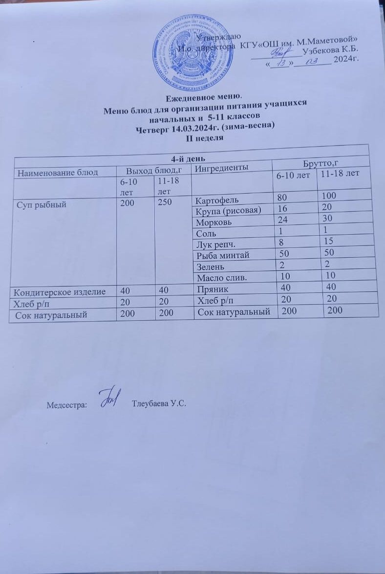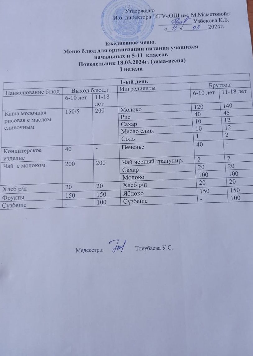 18.03.2024 БАСТАУЫШ СЫНЫПТАР МЕН 5 – 11 СЫНЫПТЫҢ ӘЛЕУМЕТТІК ОСАЛ ТОП ОҚУШЫЛАРЫНЫҢ ТЕГІН ТАМАҚТАНУЫН ҰЙЫМДАСТЫРУҒА АРНАЛҒАН АС МӘЗІРІ