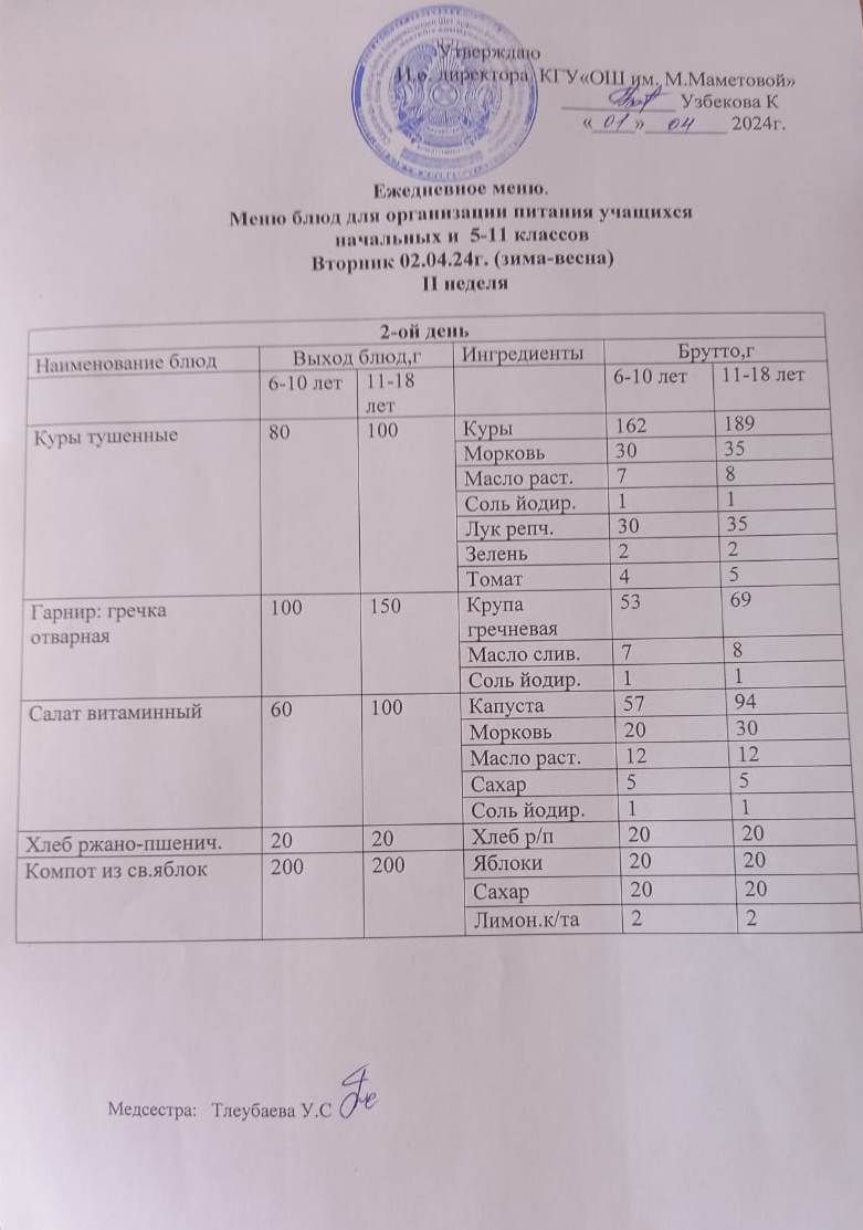 02.04.2024 КҮНІНЕ БАСТАУЫШ СЫНЫПТАР МЕН 5 – 11 СЫНЫПТЫҢ ӘЛЕУМЕТТІК ОСАЛ ТОП ОҚУШЫЛАРЫНЫҢ ТЕГІН ТАМАҚТАНУЫН ҰЙЫМДАСТЫРУҒА АРНАЛҒАН АС МӘЗІРІ