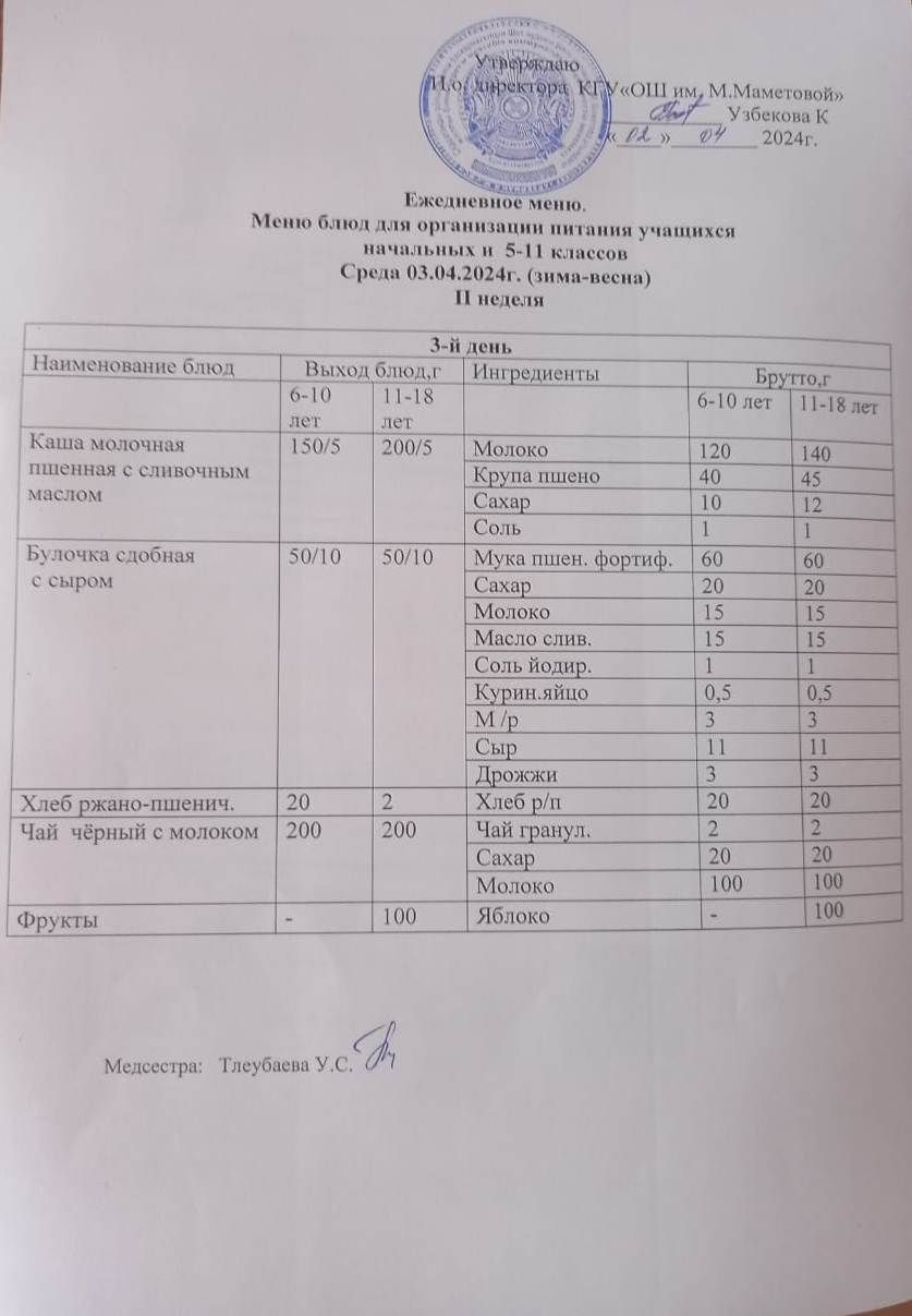 11.04.2024 БАСТАУЫШ СЫНЫПТАР МЕН 5 – 11 СЫНЫПТЫҢ ӘЛЕУМЕТТІК ОСАЛ ТОП ОҚУШЫЛАРЫНЫҢ ТЕГІН ТАМАҚТАНУЫН ҰЙЫМДАСТЫРУҒА АРНАЛҒАН АС МӘЗІРІ