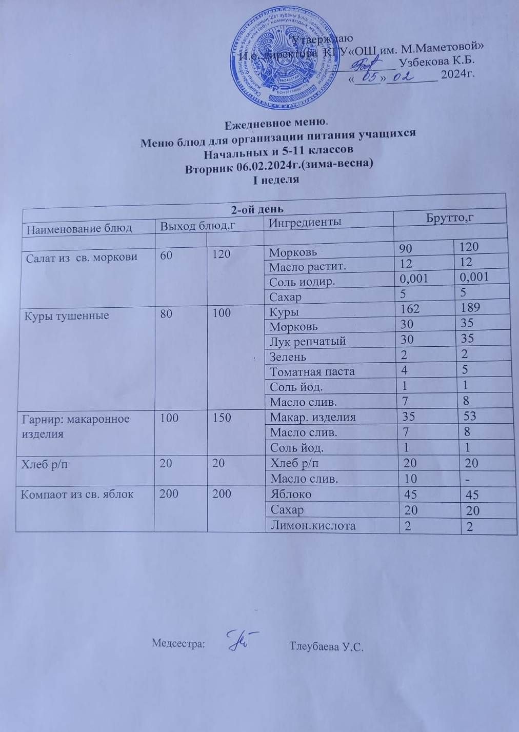 МЕНЮ ДЛЯ ОРГАНИЗАЦИИ БЕСПЛАТНОГО ПИТАНИЯ УЧАЩИХСЯ ДЛЯ НАЧАЛЬНЫХ КЛАССОВ И 5 - 11 КЛАССОВ СОЦИАЛЬНЫХ ДЕТЕЙ НА 06.02.2024