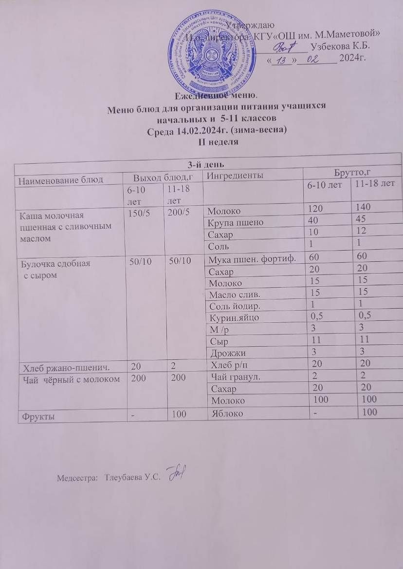 МЕНЮ ДЛЯ ОРГАНИЗАЦИИ БЕСПЛАТНОГО ПИТАНИЯ УЧАЩИХСЯ ДЛЯ НАЧАЛЬНЫХ КЛАССОВ И 5 - 11 КЛАССОВ СОЦИАЛЬНЫХ ДЕТЕЙ НА 14.02.2024