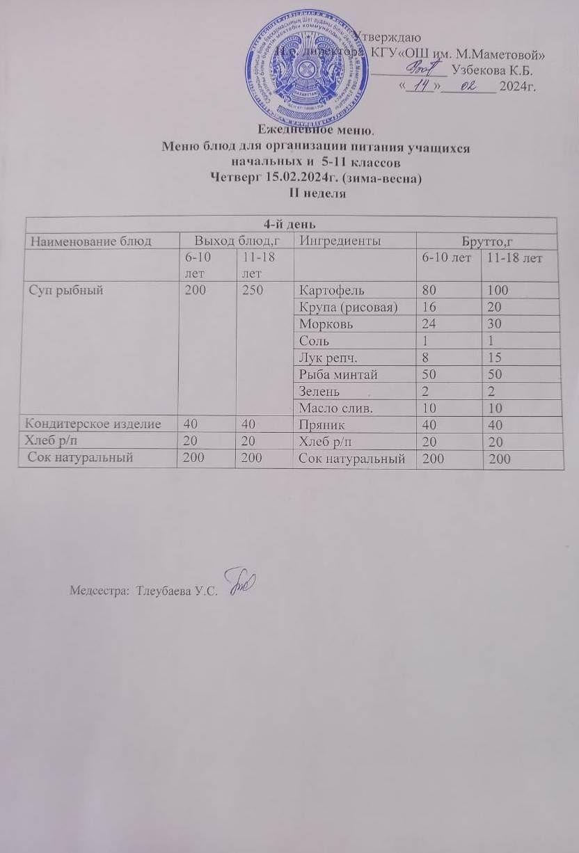 МЕНЮ ДЛЯ ОРГАНИЗАЦИИ БЕСПЛАТНОГО ПИТАНИЯ УЧАЩИХСЯ ДЛЯ НАЧАЛЬНЫХ КЛАССОВ И 5 - 11 КЛАССОВ СОЦИАЛЬНЫХ ДЕТЕЙ НА 15.02.2024