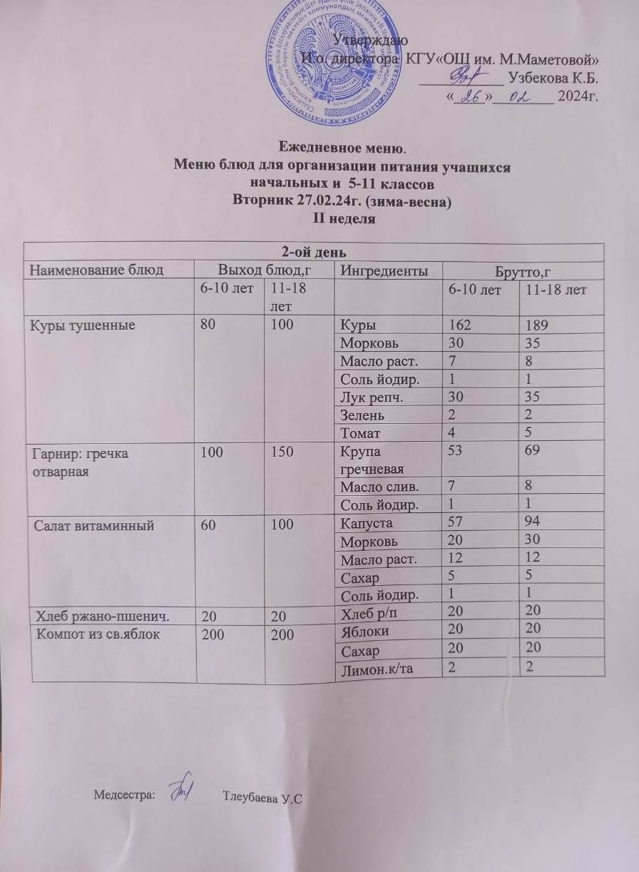 МЕНЮ ДЛЯ ОРГАНИЗАЦИИ БЕСПЛАТНОГО ПИТАНИЯ УЧАЩИХСЯ ДЛЯ НАЧАЛЬНЫХ КЛАССОВ И 5 - 11 КЛАССОВ СОЦИАЛЬНЫХ ДЕТЕЙ НА 27.02.2024