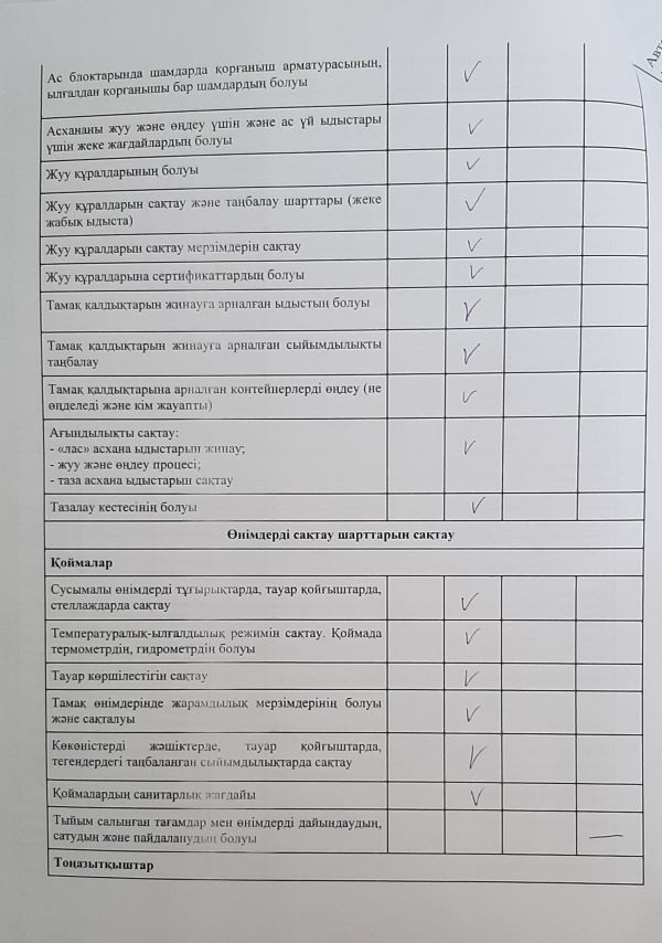 Тамақтану сапасына мониторинг жүргізу актісі