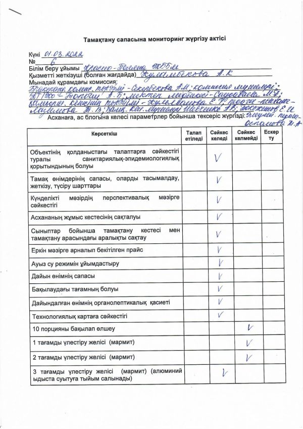 Тамақтану сапасына мониторинг жүргізілді
