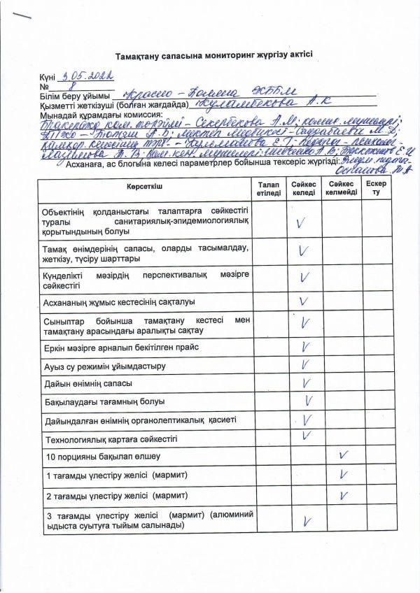 2. Тағамдардың санитарлы-эпидемиологиялык талаптарға сай ас мәзiрi дайындалатынын айтты.