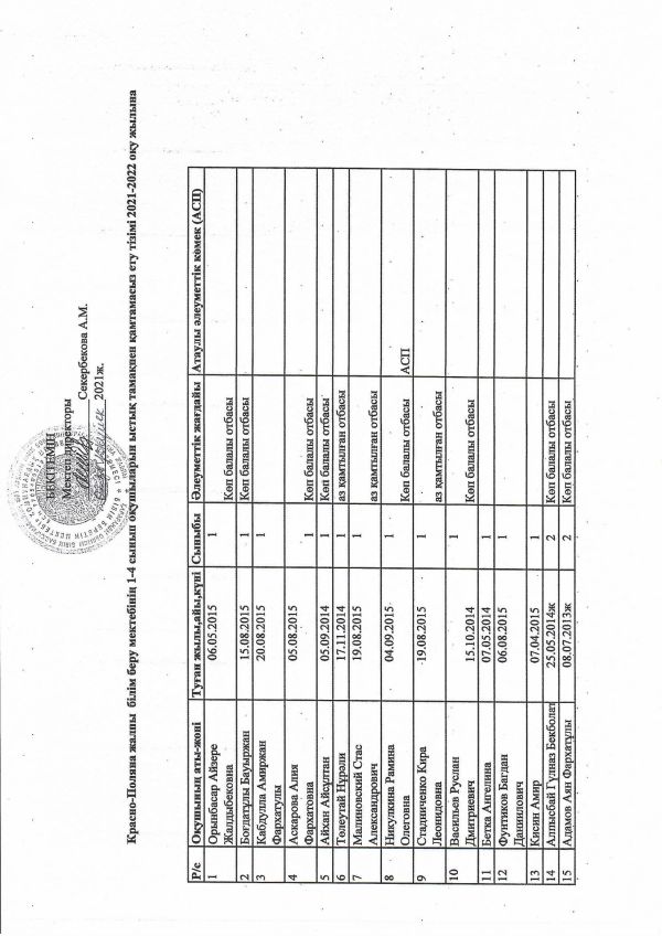 Ыстық тамақпен қамтылған 5-11 сынып оқушылары тізімі