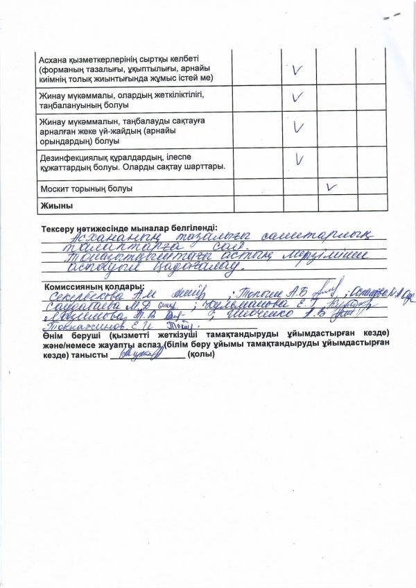 Бракераждық комиссия мониторинг актісі