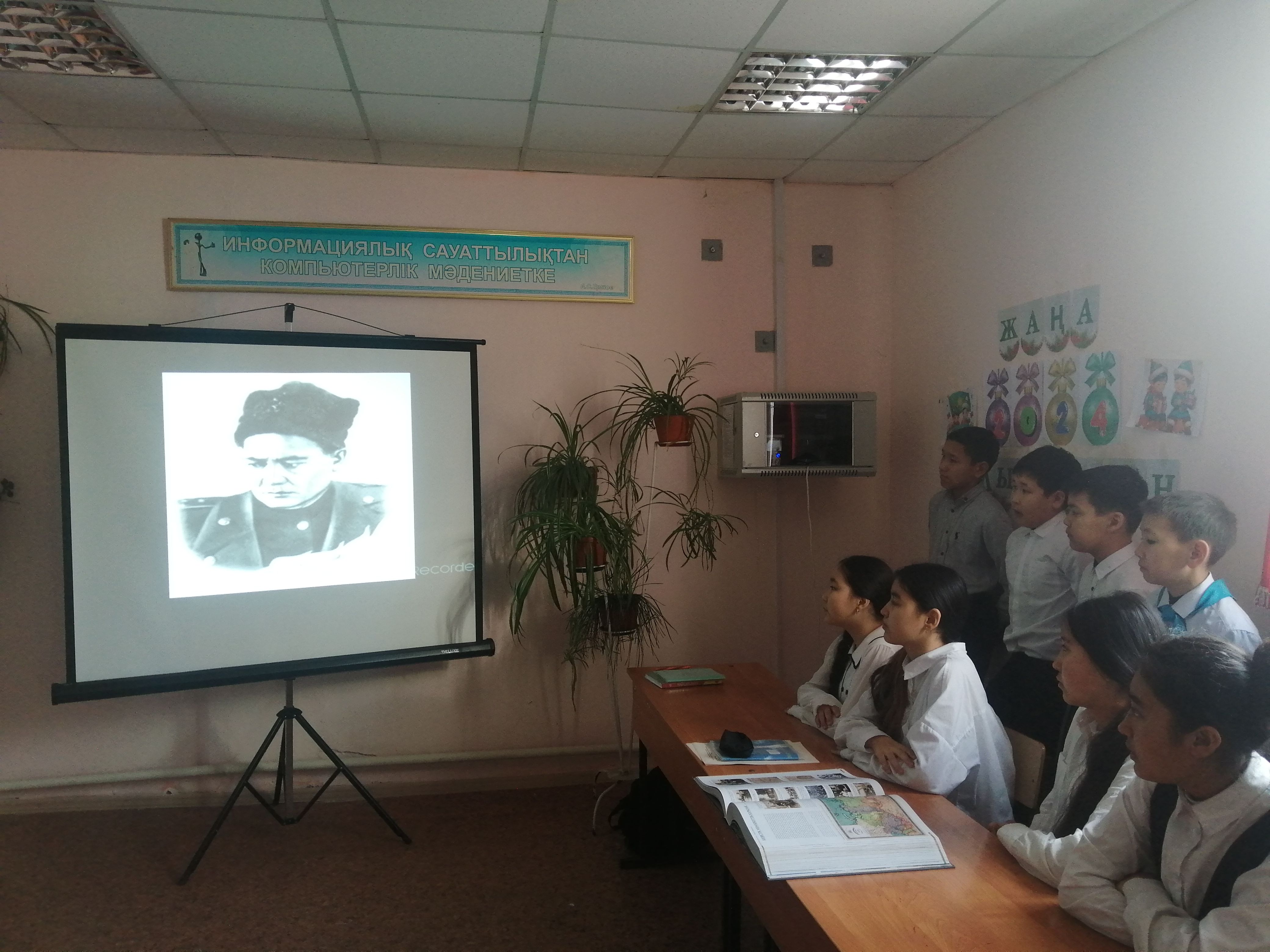Ортау НОМ Б.Момышұлының өмірі мен ерліктерін насихаттау мақсатында тарих пәнінің мұғалімі Л.Д.Казимова 6-9 сыныптар арасында таным сағатын өткізді.