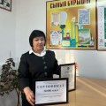 “Үздік кабинет” аудандық сайысына қатысқан мектебіміздің химия пәні мұғалімі Тезекбаева Рысты Сейпеновна “Ең үздік химия кабинеті” номинациясын жеңіп алды