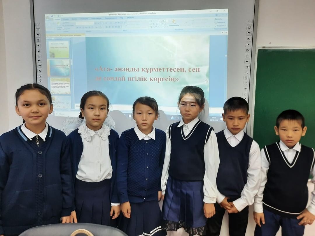 С. Мұқамеджанов атындағы ЖББМ КММ ның 4 сынып оқушыларымен "Қарттарым-асыл қазынам" тақырыбында сынып сағаты өтті.
