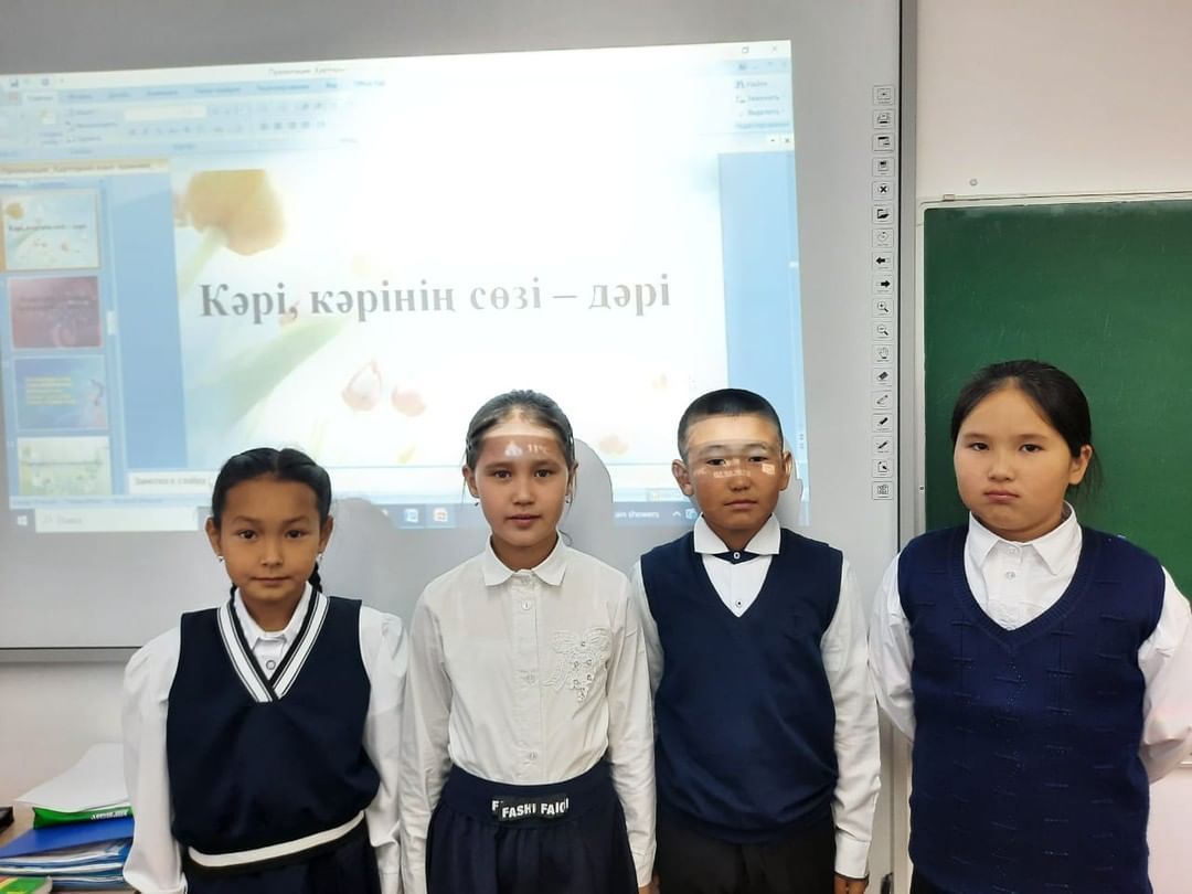4 сынып оқушыларымен "Қарттарым-асыл қазынам" тақырыбында сынып сағаты өтті.