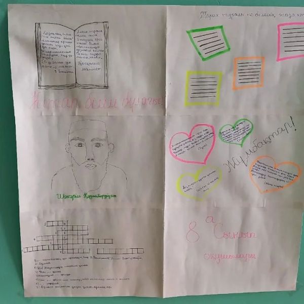 С.Мұқамеджанов атындағы ЖББМ КММ мектебі."Тарих толқынында"тарихи сауаттылық апталығы жоспары аясында,сөзжұмбақ құрастыру байқауы бойынша 7-8- сынып,қабырға газетін шығару байқауы…