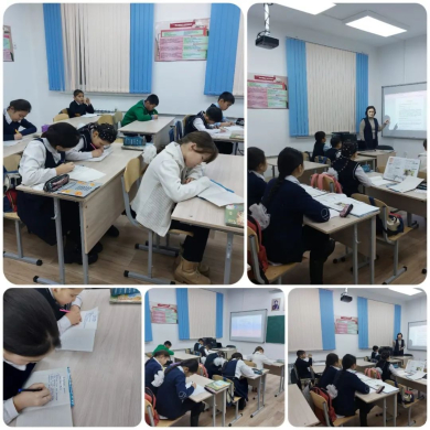 С.Мұқамеджанов атындағы ЖББМ " XX ғасыр-сауатты ұрпақ ғасыры" атты сауаттылық апталығының жоспарына сәйкес 4-сыныпта "Қыс бейнесі" тақырыбында бестік диктант алынды.