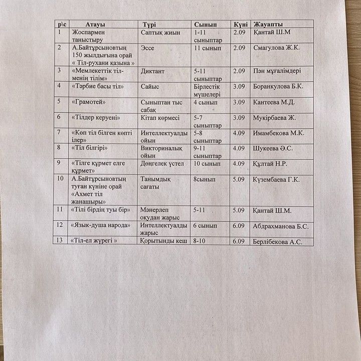 С.Мұқамеджанов атындағы ЖББМ-де 5.09.2024 "Қазақстан халқының тілдері күні" онкүндігінің жоспарына сай "Тілім менің ғасырларға аманат"тақырыбында саптық жиын өтті.