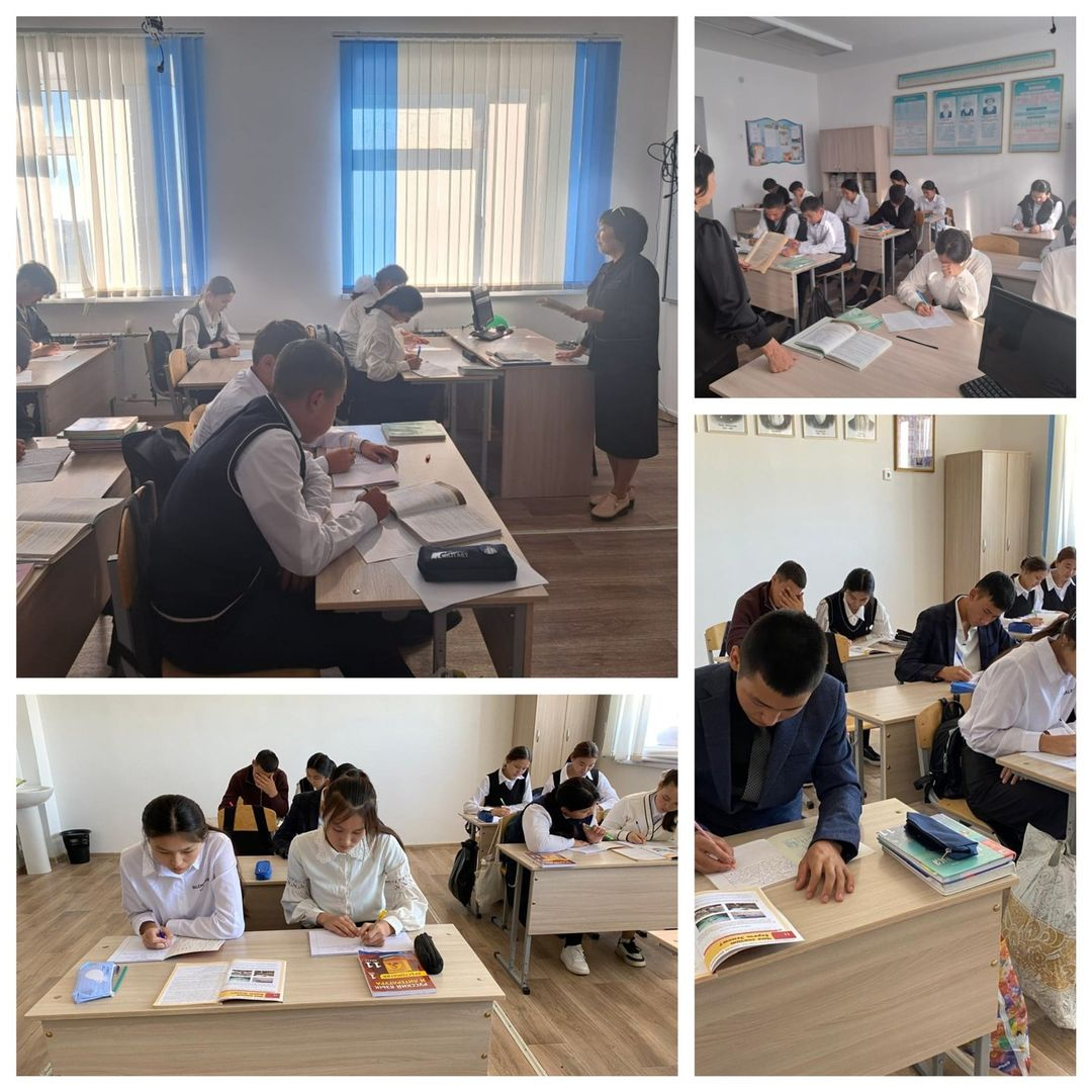 С.Мұқамеджанов атындағы ЖББМ-де Қазақстан халқы тілдері күні мерекeсіне орайөткізіліп отырған он күндіктің жоспарына сәйкес диктант алынды.