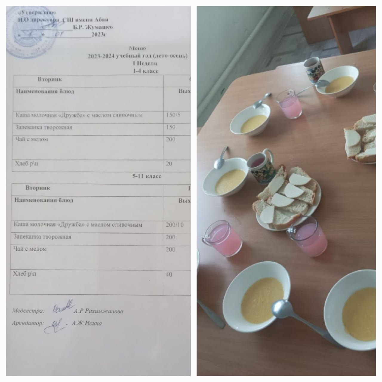 Ас мәзірі 1 апта дүйсенбі