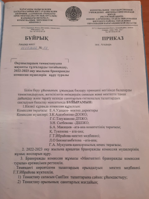 2021-2022 оқу жылына бракеражды комиссия мүшелерін құру туралы