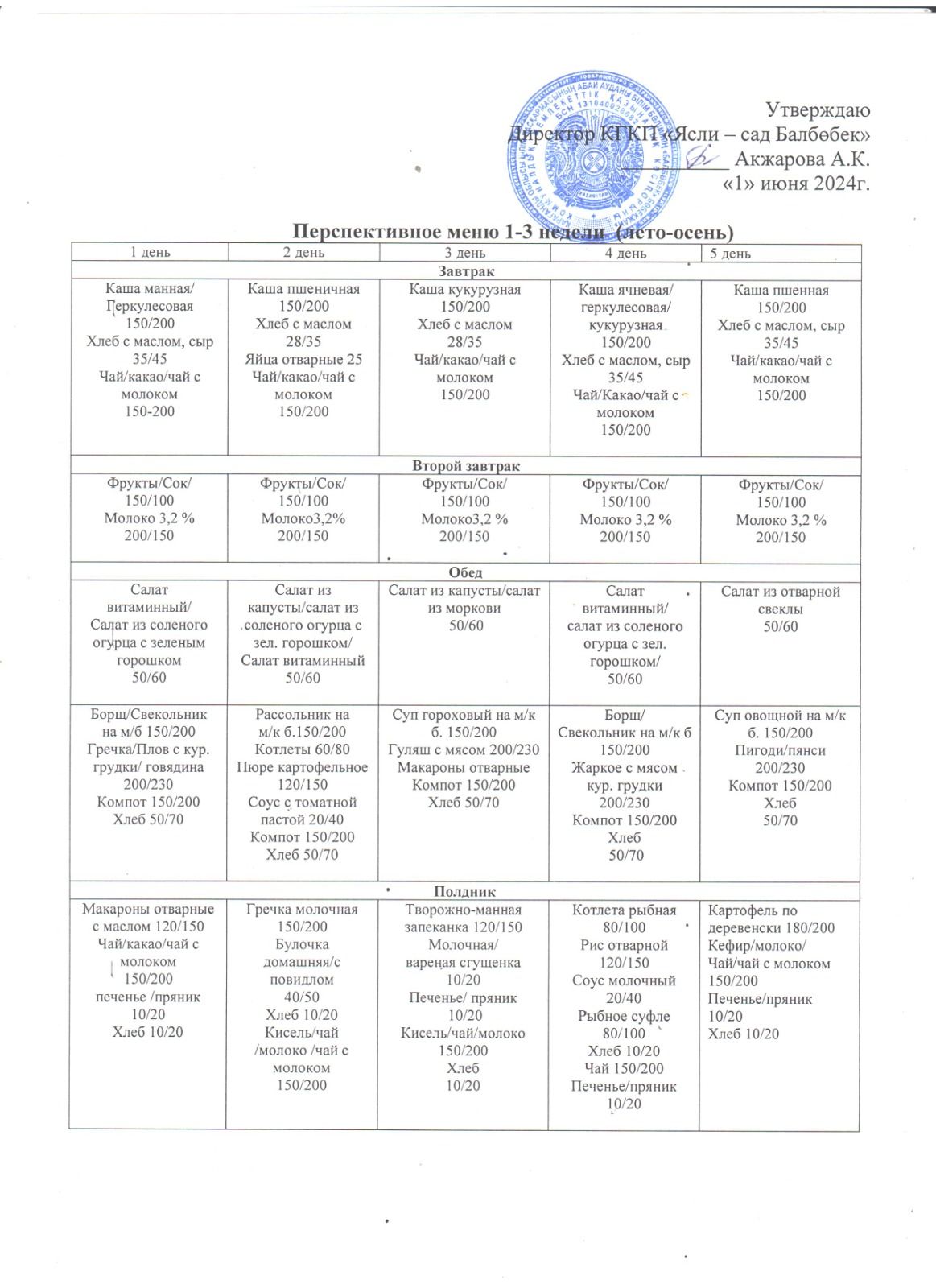 Болашақ мәзір 1-3 апта (жаз-күз)