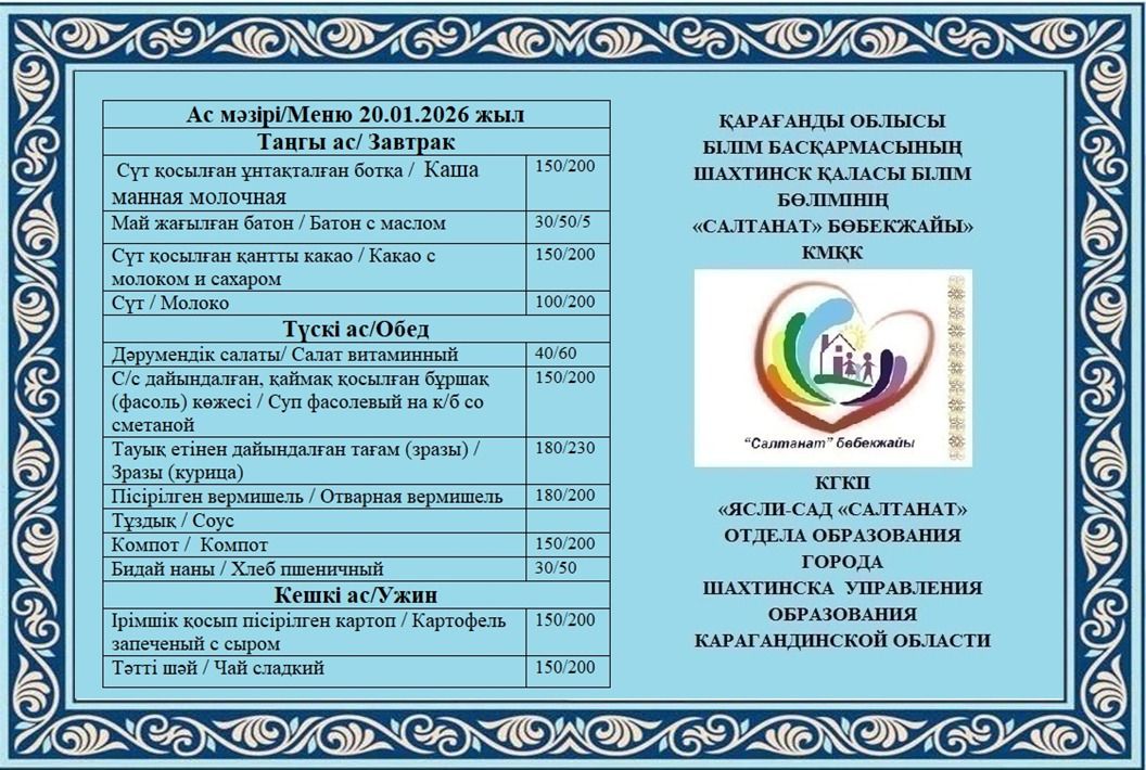 Сумма питания на 20.01.2026 составляет: на одного ребёнка до 3 лет - 676.60 тенге; на одного ребенка с 3 до 6 лет - 813.88 тенге