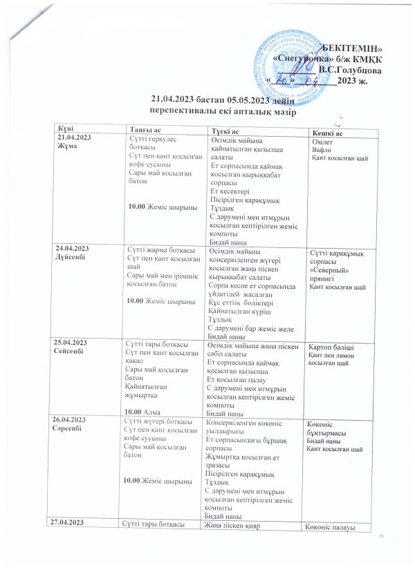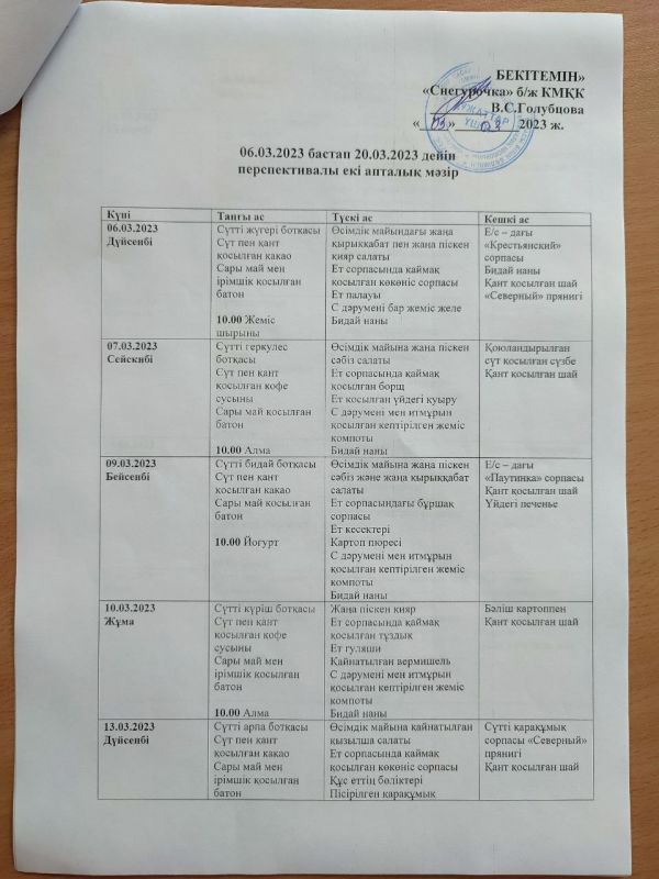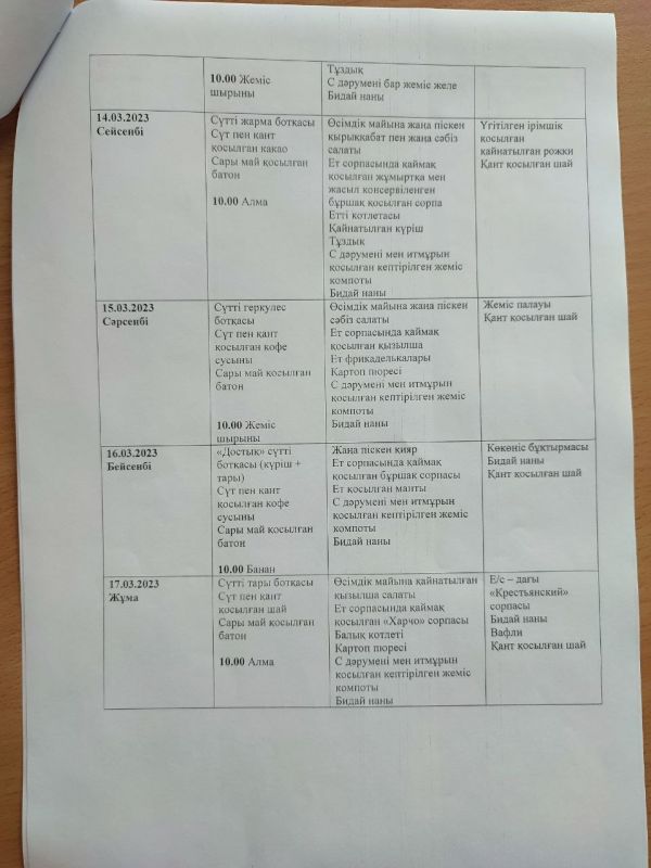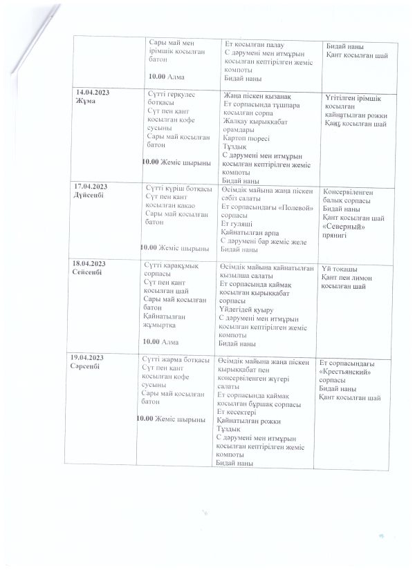 Перспективалы екі апталық мәзір 9.11-22.11.2022