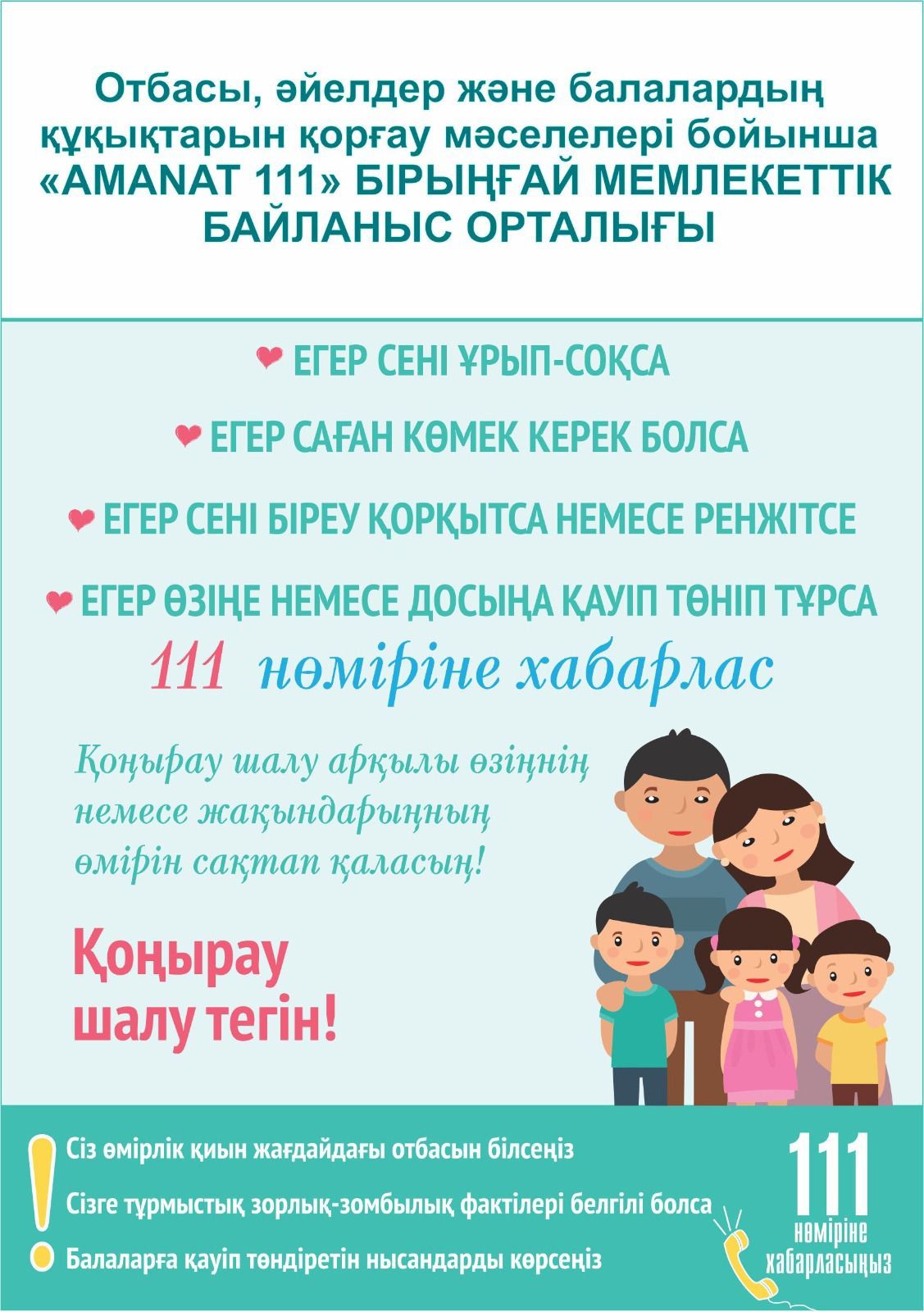 ✅С 16 октября казахстанцы, ставшие жертвами бытового насилия и буллинга смогут круглосуточно обращаться в единый государственный контакт-центр «111 – AMANAT». Сегодня об этом соо…