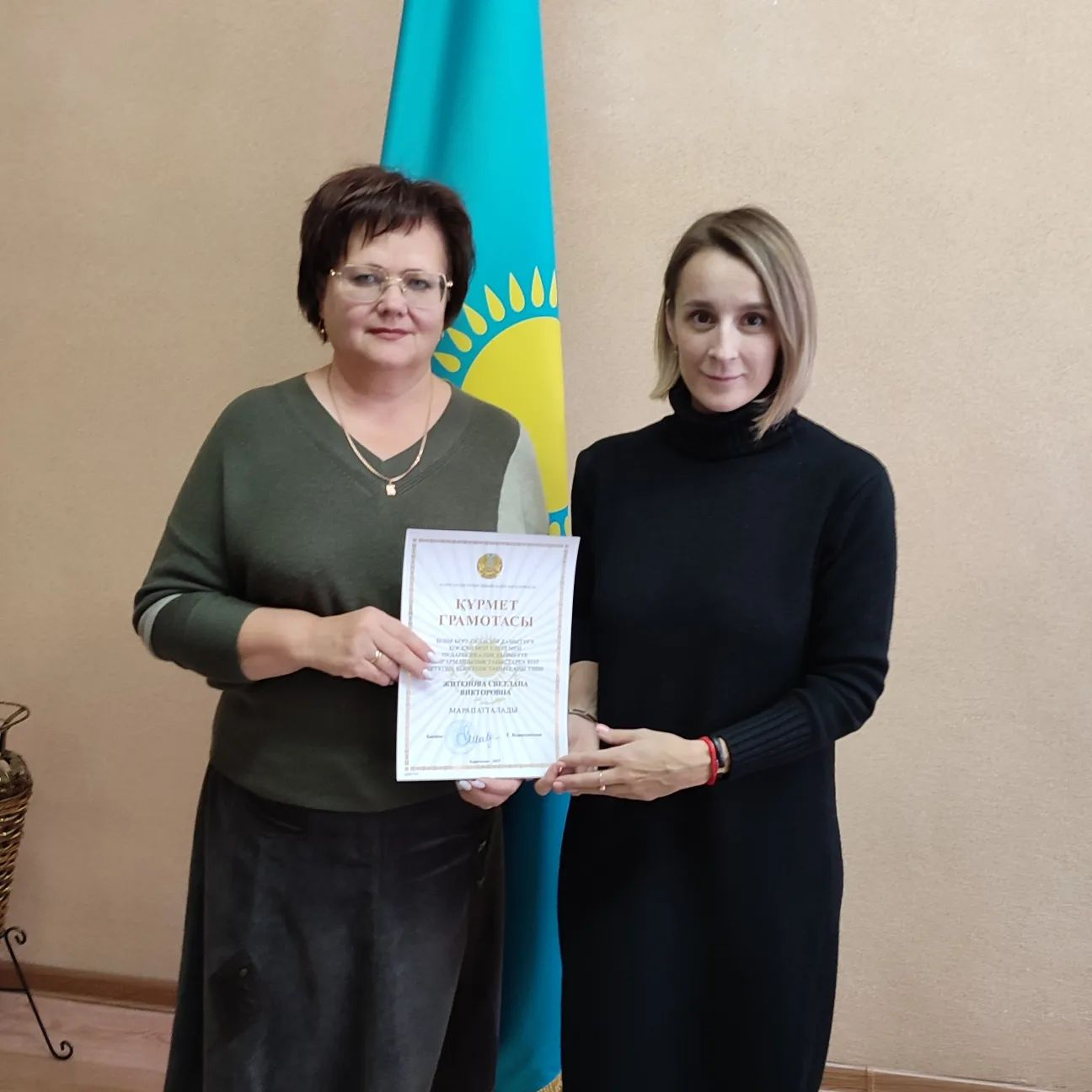 В честь празднования Дня языков народов Казахстана была награждена почетной грамотой управления образования Аушева И.С. - учитель-логопед нашего детского сада.