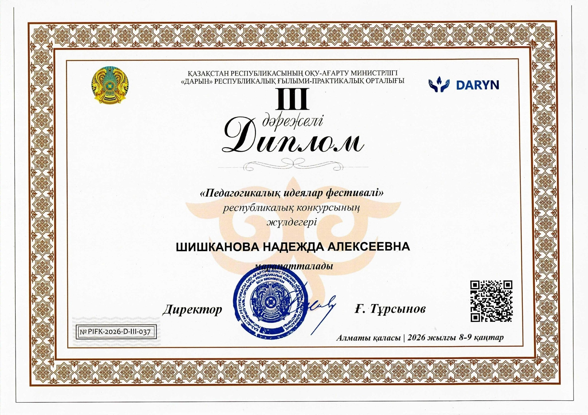 Педагог-психолог Максяткина Т.А. заняла 3 место в Республиканском конкурсе "Үздік авторлық бағдарлама"