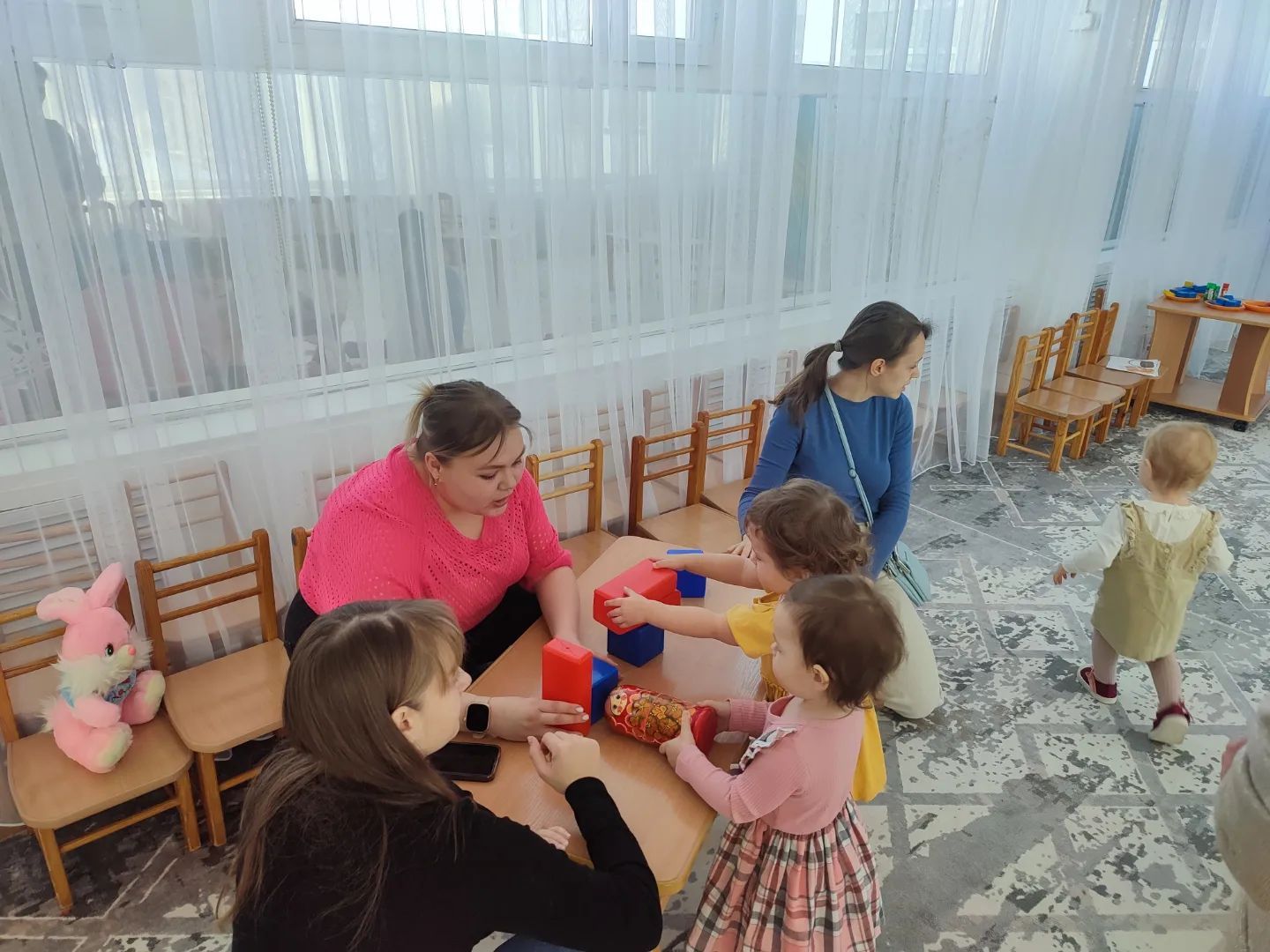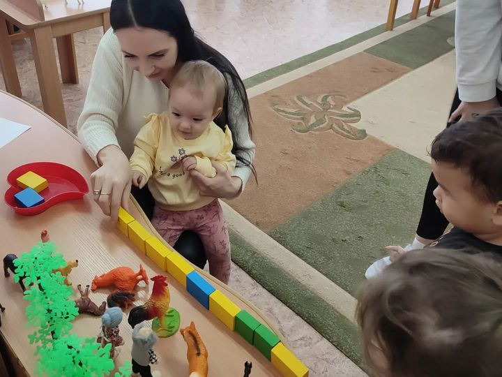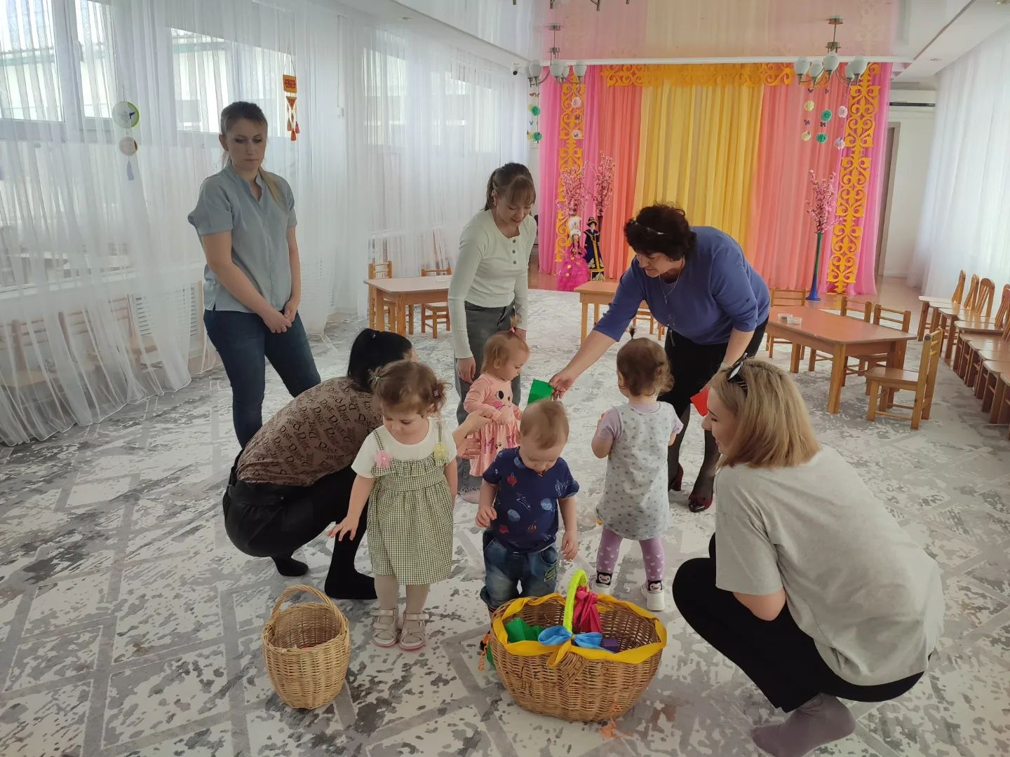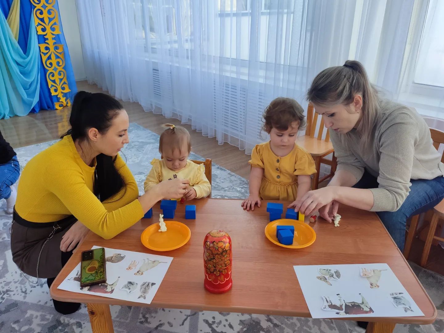 Тема: "Зайчик в гостях у матрешки". Вместе с Зайчиком научились стоить стул и стол из кубиков и кирпичиков, приготовили угощение для бе…