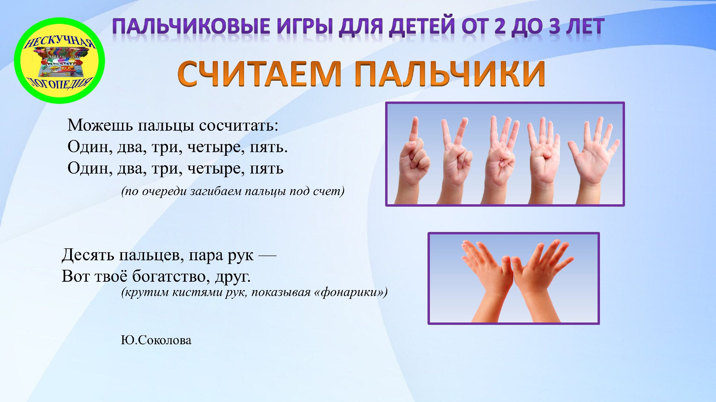 Консультация для родителей в рамках проекта "Заочный детский сад". Тема: "Пальчиковые игры для детей 2х лет". Развитие мелкой моторики и речи - эти два процесса в развитии ребёнк…