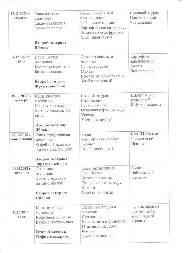 Перспективное десятидневное меню с 22.12.2022 по 06.01.2023 г.