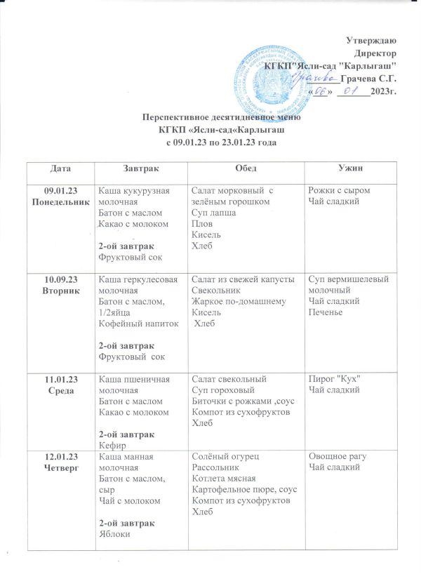 Перспективное десятидневное меню с 09.01.2023 г. по 23.01.2023 г.
