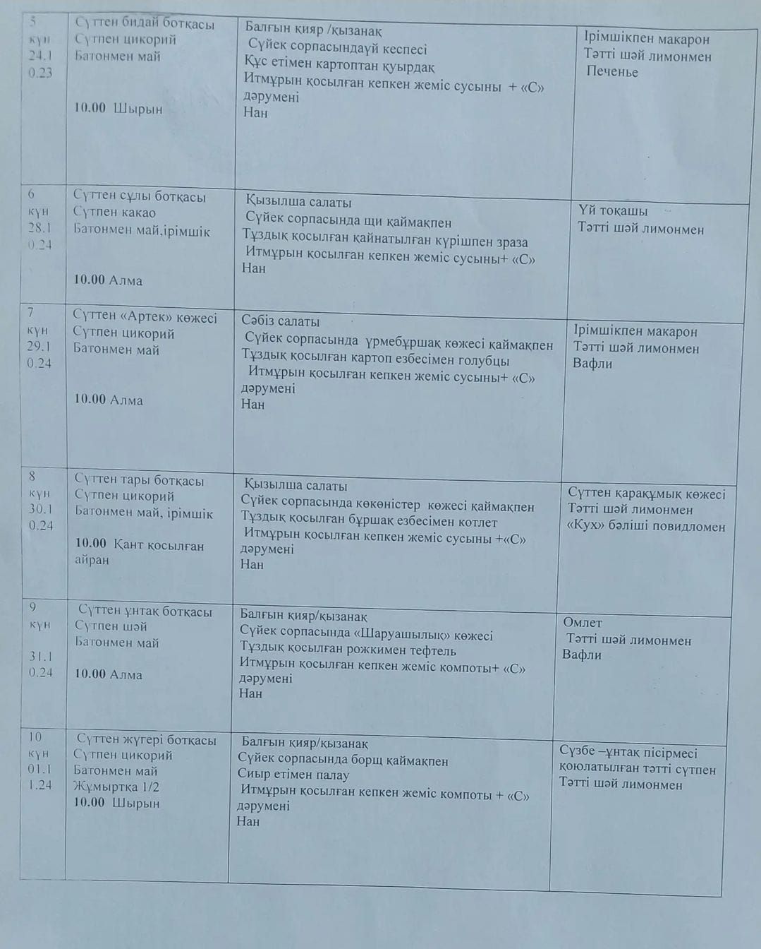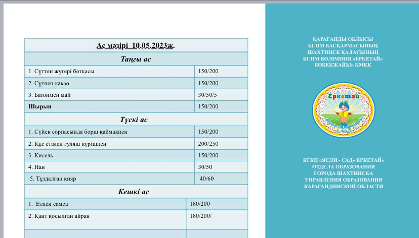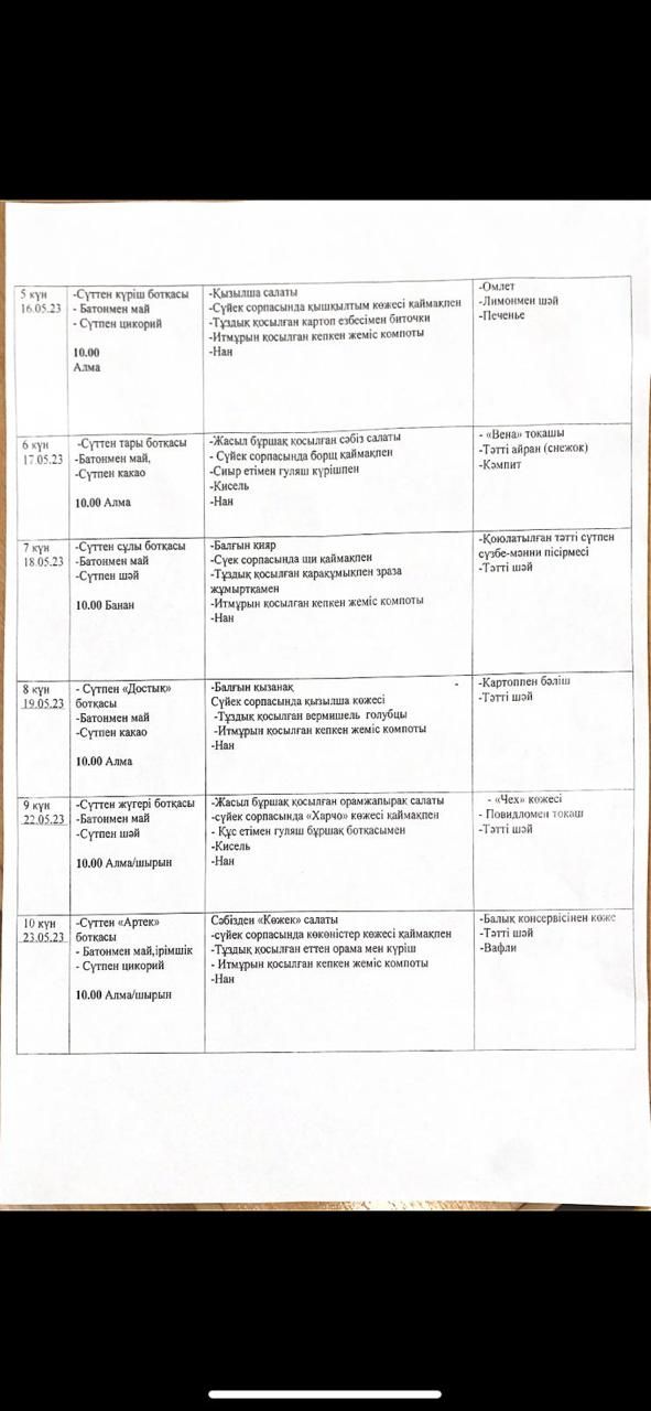 21.04.-05.085.2023 арналған ас мәзірі