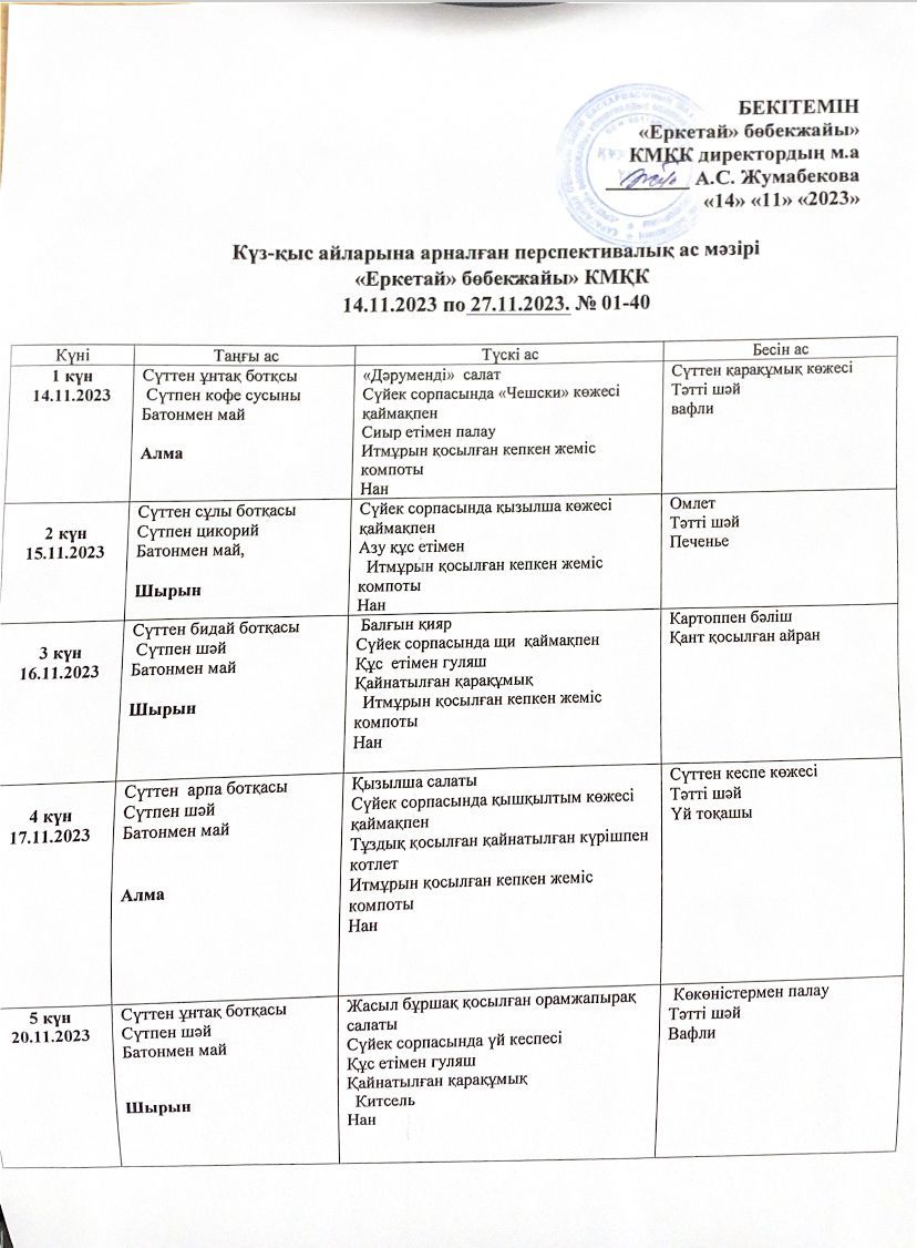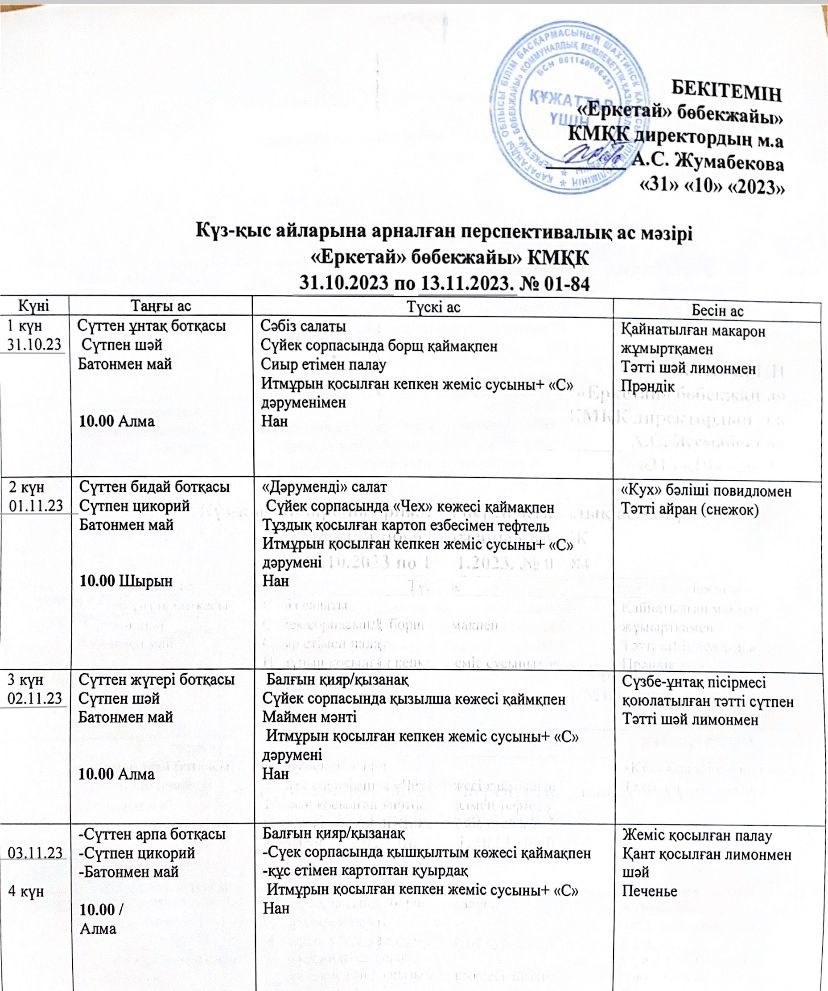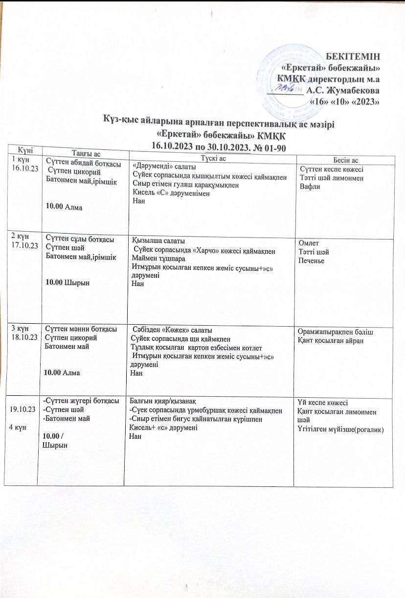 16.10-30.10.2023 ж араналған  Перспективалық ас мәзірі!