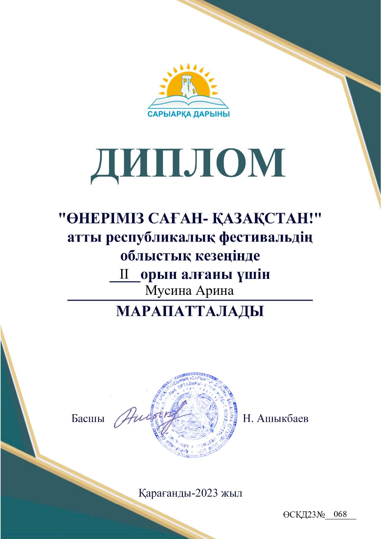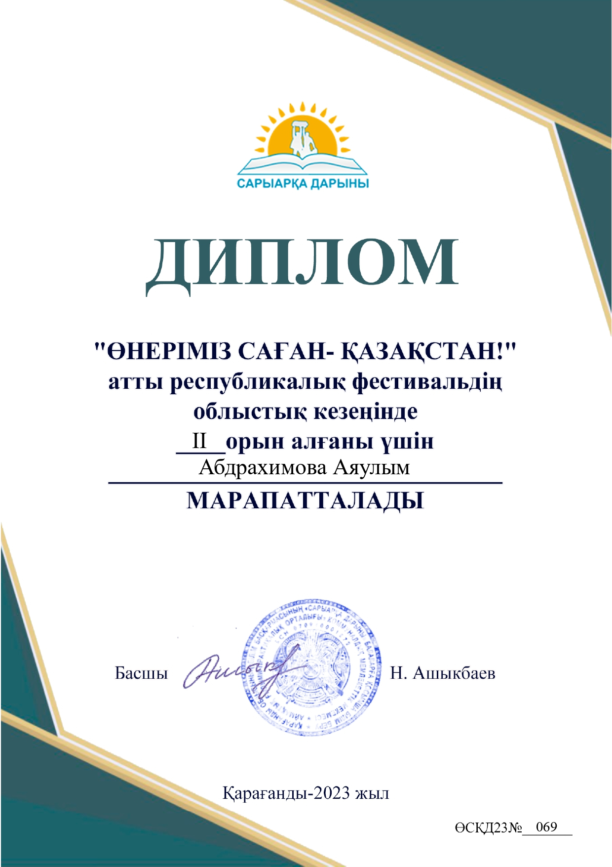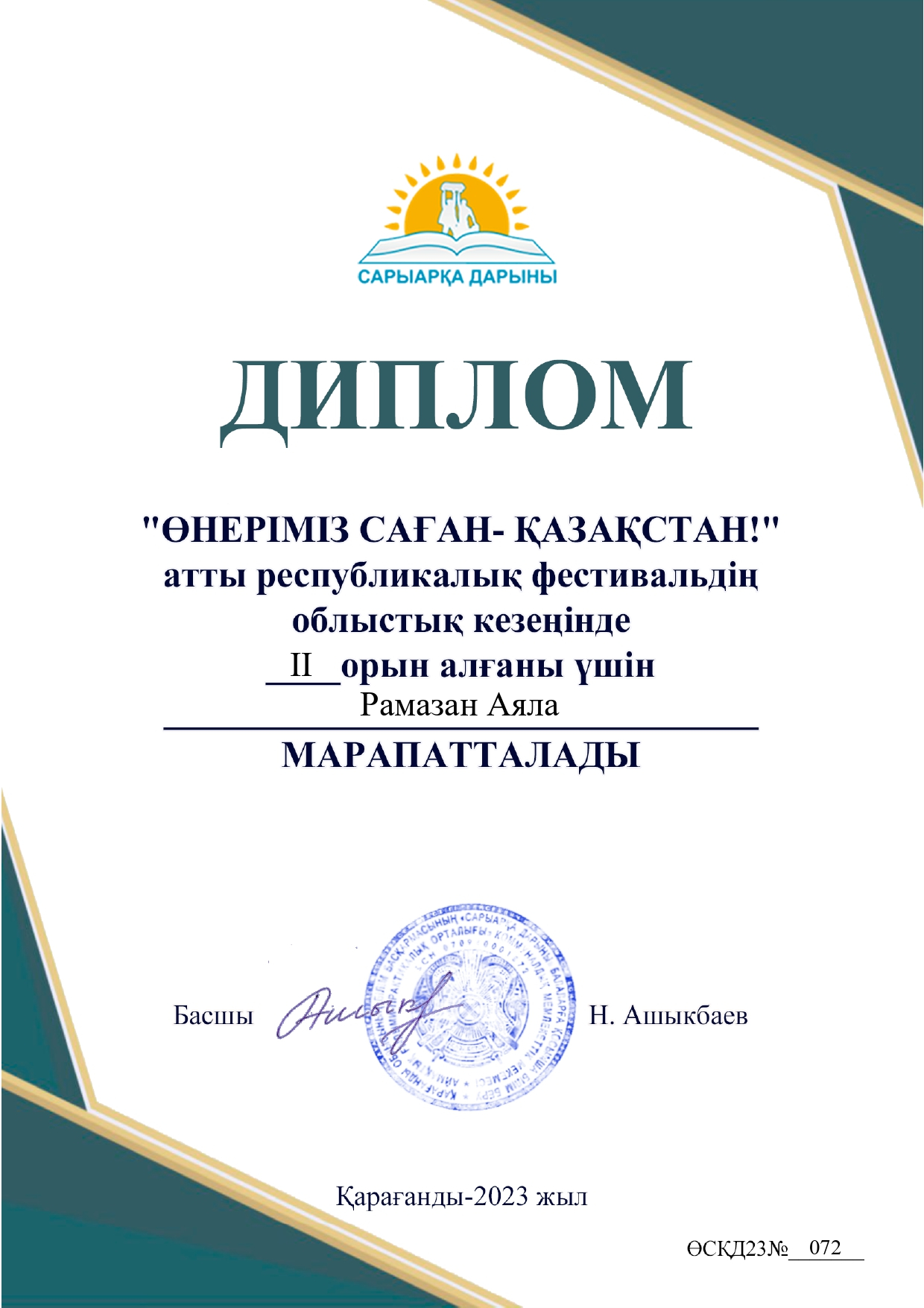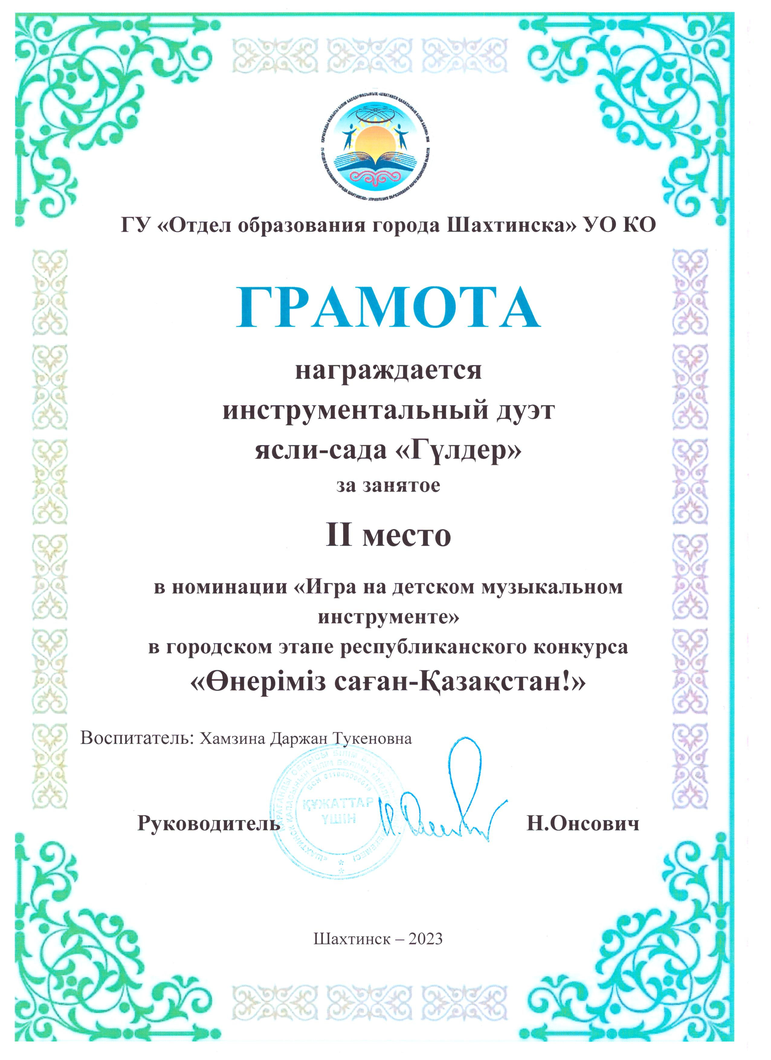 "Өнеріміз саған - Қазақстан" атты байқауда қалалық кезеңнен 2 орын