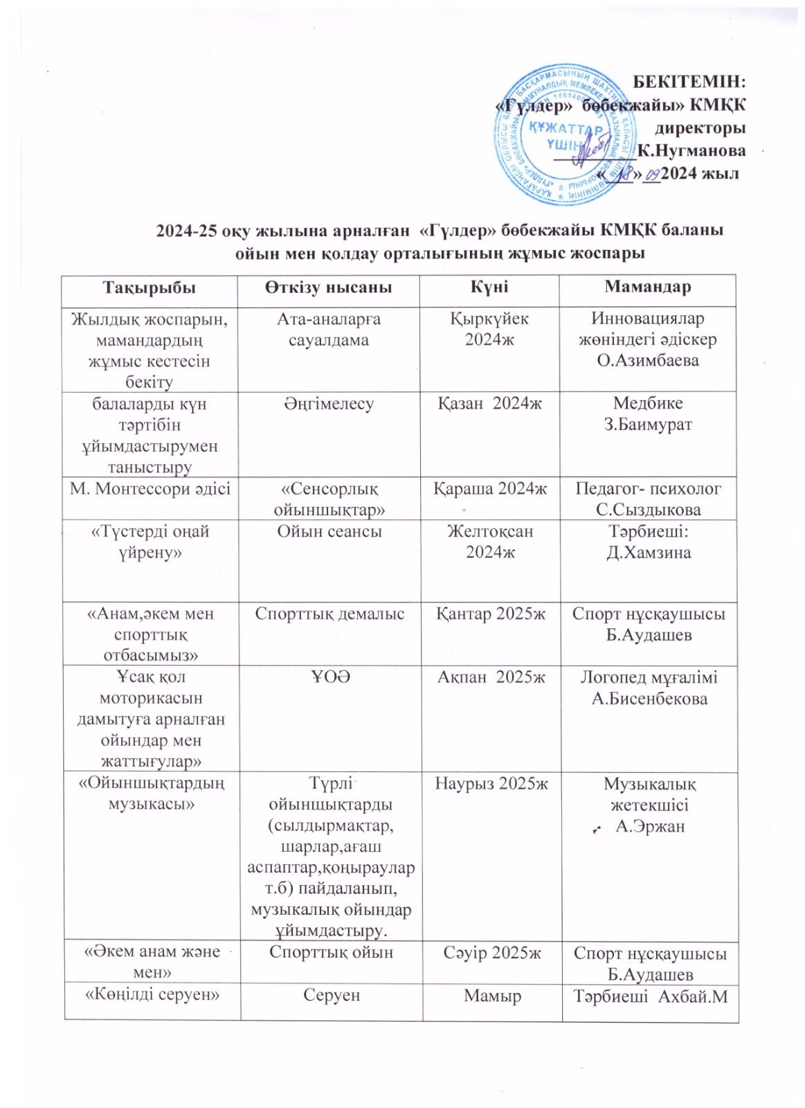 2024-25 жылына сырттай балабақшаға арналған оқу жоспары
