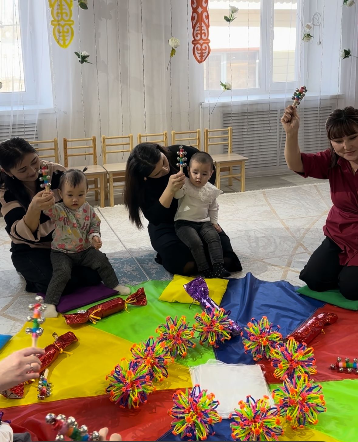 Музыка жетекшісі А.Эржан сырттай балабақша жобасы аясында бөбекжайға кезекте тұрған балалардың аналарымен көңілді уақыттарын өткізді