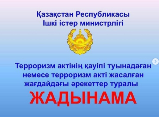 Терроризм актінің қауіпі туынадаған немесе терроризм акті жасалған жағдайдағы әрекеттер туралы ЖАДЫНАМА