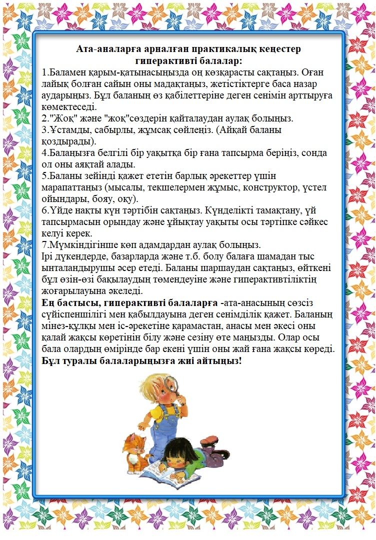 Ата-аналарға кеңес беру "Гиперактивті бала. Қалай көмектесуге болады?»