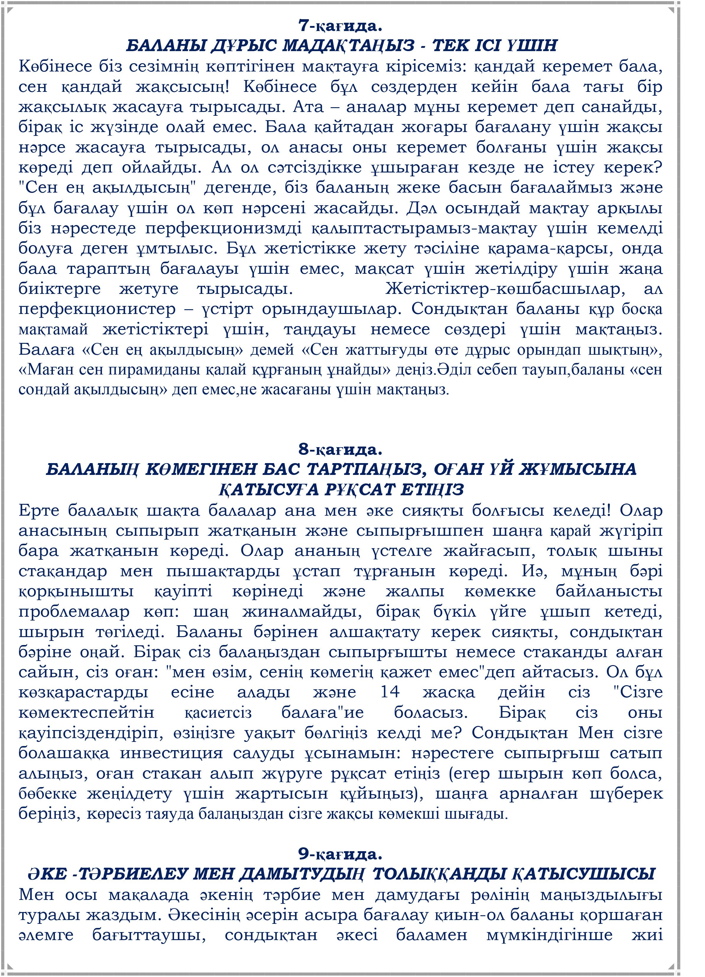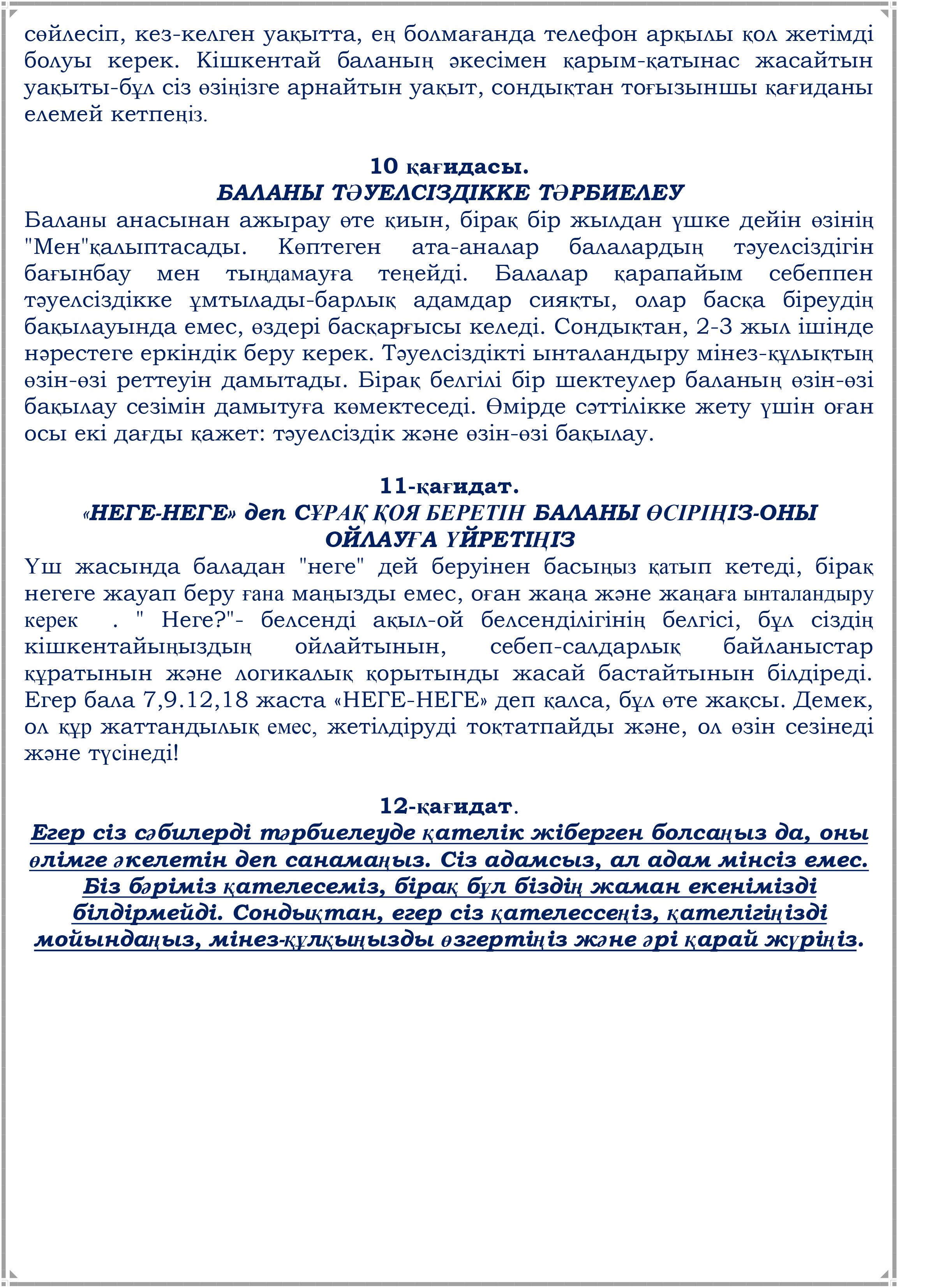 Ата-аналарға арналған жадынама "Бала тәрбиесінің 12 қағидасы"