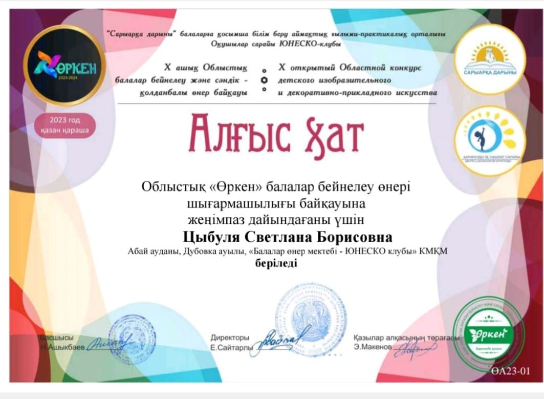 Итоги X Открытого Областного Конкурса Детского Изобразительного и Декоративно-Прикладного Искусства "Өркен" при поддержке Сарыарқа Дарыны