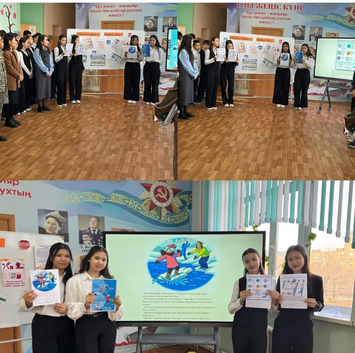 "Заңды білу -заман талабы” атты құқық апталығына “Мұздағы қауіпсіздікті сақтау” тақырыбында 9 “Ә” сыныбы жиын өткіз