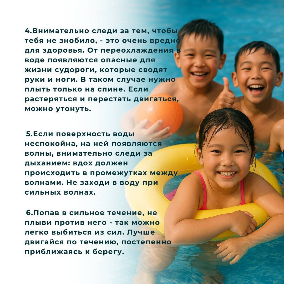 Жазғы демалыс кезінде балалардың қауіпсіздік шараларын сақтауы аса маңызды. Ата-аналарды, балаларды суға түсу ережелерімен танысуға және ол шарттарды сақтауға шақырамыз