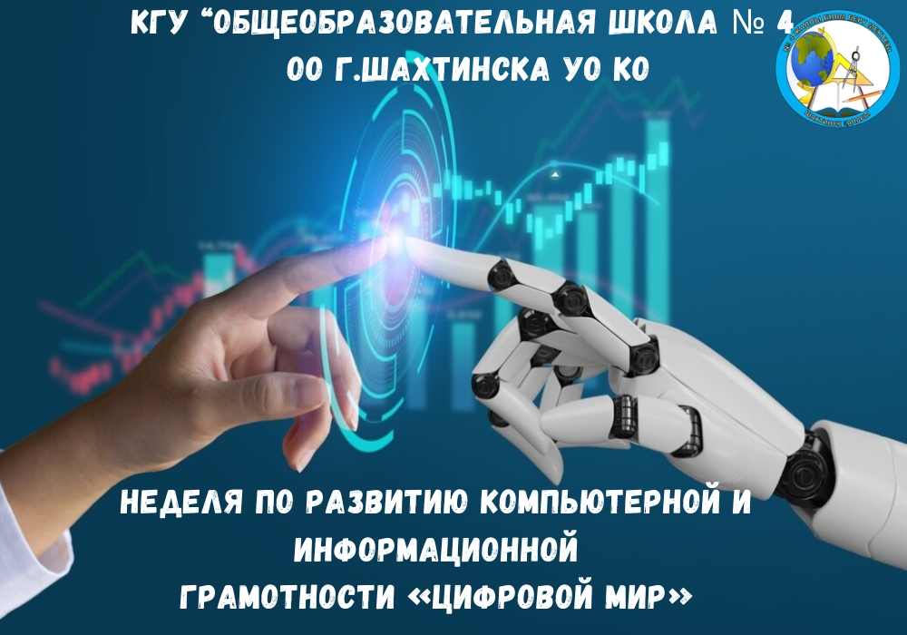 Қарағанды облысы білім басқармасының Шахтинск қаласы білім бөлімінің "№ 4 жалпы білім беретін мектебі" КММ-де 2024 жылғы 5-9 ақпан аралығында "Цифрлық әлем"компьютерлік және ақпараттық сауаттылық апталығы өтті.