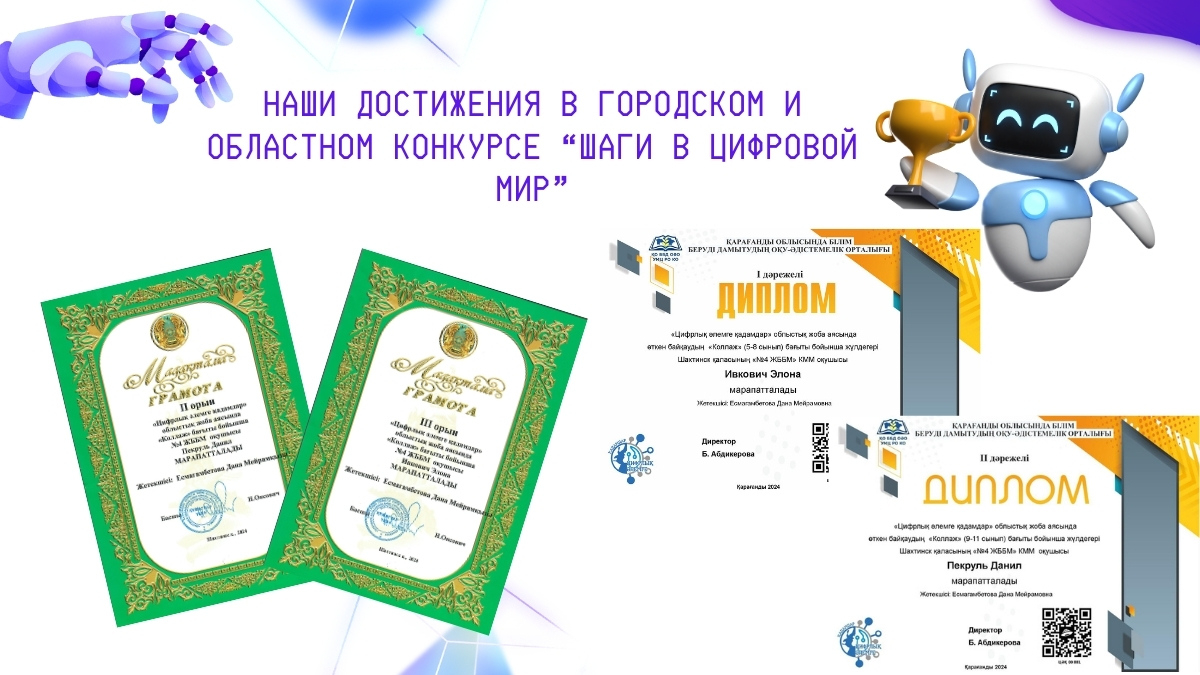 "Цифрлық әлемге қадамдар" қалалық және облыстық байқауындағы жетістіктеріміз