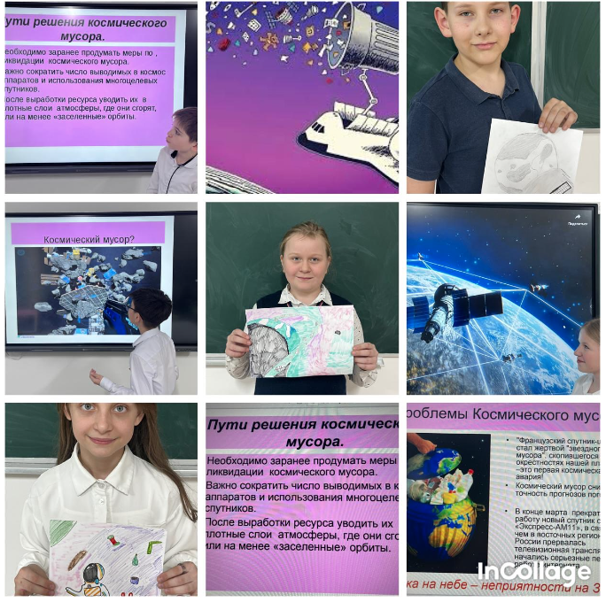 11 апреля в КГУ «Школа-лицей имени Шокана Уалиханова» в преддверии празднования Дня Космонавтики, в рамках факультативного курса Глобальные Компетенции, среди 5-ых и 6-ых классов была проведена исследовательская работа « Космический мусор: проблемы и возможные решения». В ходе занятия учащиеся изучили что представляет собой космический мусор,проблемы и угрозы космического мусора, были предложены пути решения проблемы. Учащиеся узнали что такое утилизация космического мусора, откуда берется космический мусор и чем он опасен?!Изучили его влияние на Землю и атмосферу.